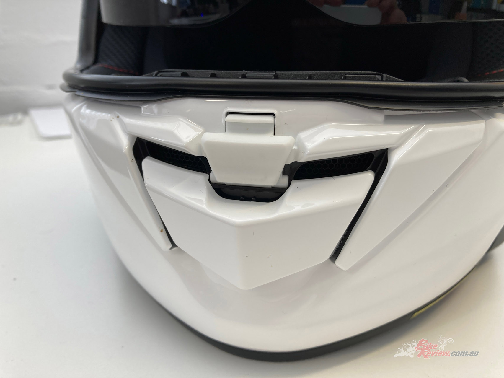 There are trick looking vortex generators behind the ear area of the helmet, so whether these help or not I’m not sure. The central main front head vent is easy to open and close, it’s massive, but there are no rear exhaust vents, only the two on the top, so no cool air reaches the back of your head. The chin vent is also huge, easy to open and close, plus the visor will pop a little to let air in if you want it to.