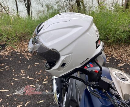Why only three months use, you ask? Well unfortunately the day after I got the new SHOEI, I went out testing on the PTR Hayabusa and that ride aggravated a hand injury I’d been waiting for surgery on, and I could not ride at all from late September until mid December, when I was able to throw the $1249.90 RRP GT-Air 3 back on and get some miles down the road. It was worth the wait, it’s a fantastic helmet and I was impressed from the word go…