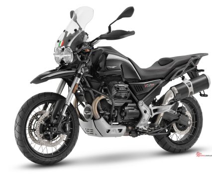 “Just like the V85 TT bikes delivered to the Head of State at the Quirinal Palace, the V85 TT Guardia d’Onore features the typical black livery with white graphics that characterise the Cuirassiers’ Moto Guzzi machines.”