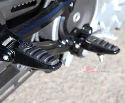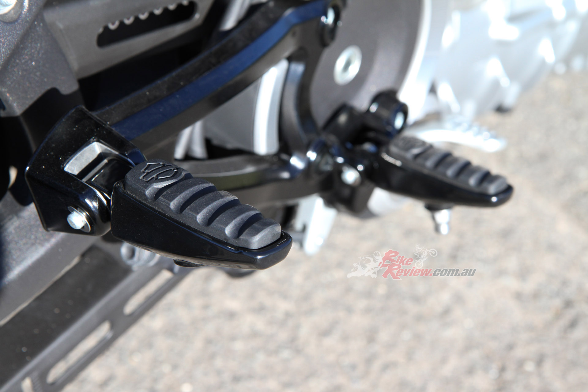 Brakes: ABS, four piston radial-mount Brembo monoblock front calipers, 300mm dual rotors (f), single 260mm floating rear rotor, dual-piston caliper (r), ABS
