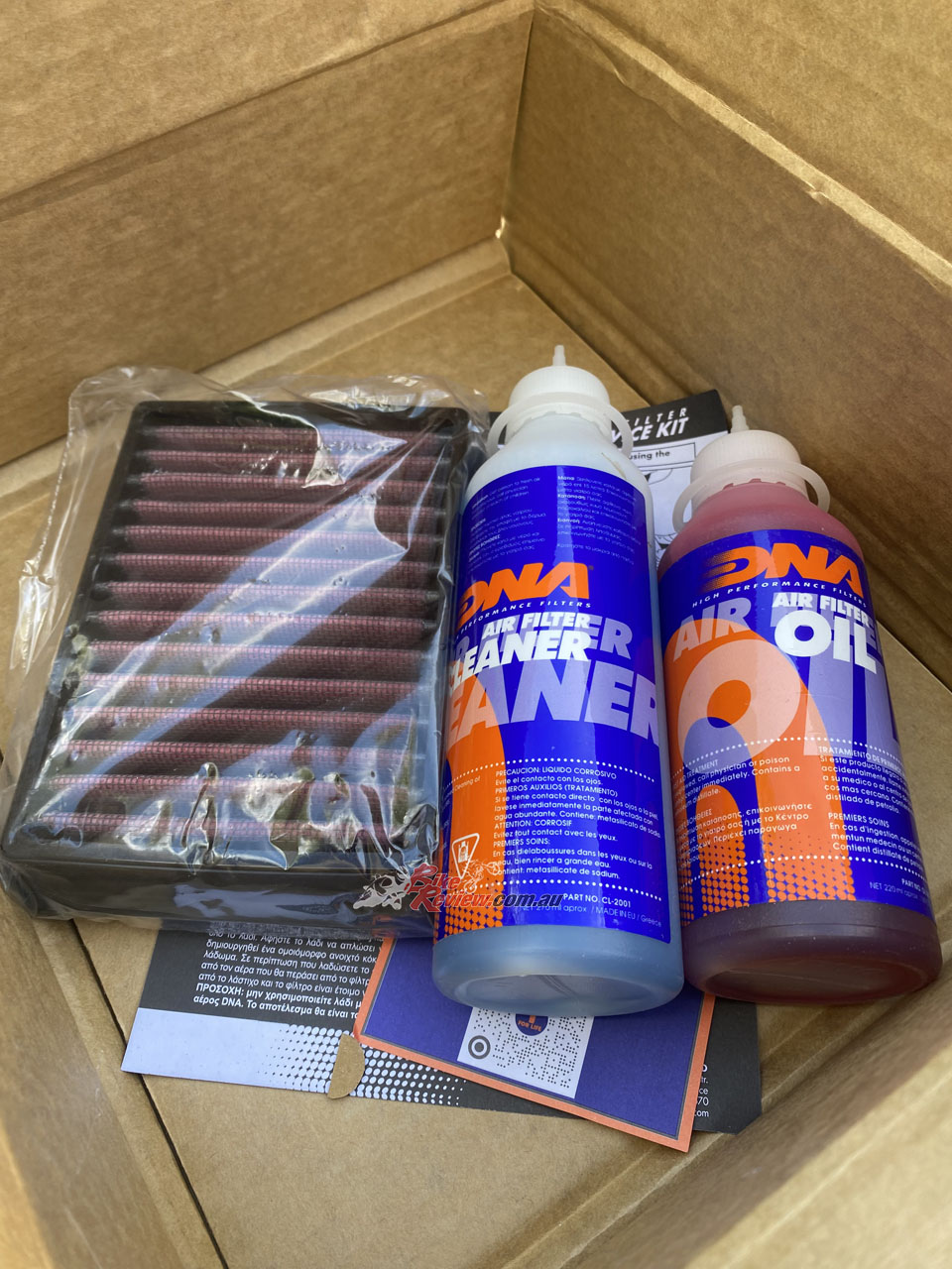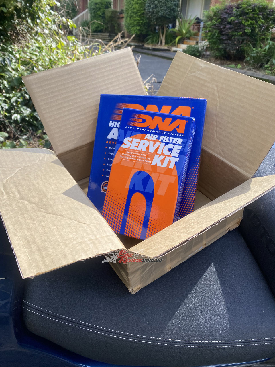 Just this week I managed to get the new DNA high-flow reusable airfilter installed, and I’ve got to say it was pretty damn easy. Much easier than the baby brother 650MT. DNA Australian (Kenma) are awesome, and also provided us with a full cleaning kit plus oil, and a bunch of stickers for the 800MT.