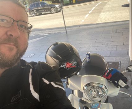 It’s important to really keep an eye ahead for potholes, particularly now after the storms and floods recently, as hitting a big pothole would be a disaster on a scooter. Suspension is of course basic, the forks are proper ones but bottom out hard and the shock is on the limit with my fat ass on board (100kg), but that is to be expected and it handles everything OK considering…