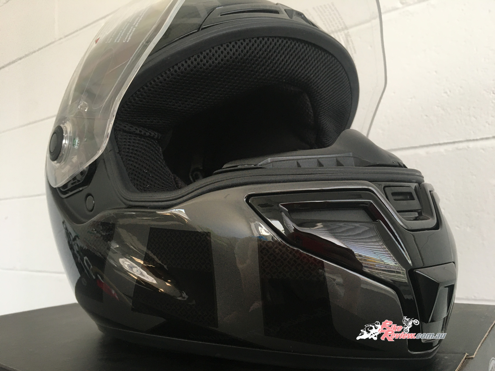 The Bell SRT Blackout helmet is a DOT, ECE approved helmet for street riders, available for an RRP of $379.95. The helmet ships with a clear Panovision visor however we swapped this out for the tinted Panovision visor, available for an additional $139.95 RRP, which transforms the overall look of the lid. It uses a fibre-glass composite shell, which makes it pretty lightweight, and has plenty of ventilation to keep you cool. The helmet also has plenty of room for eyewear, perfect for those who need to where glasses or if you need sunnies on a sunny day.