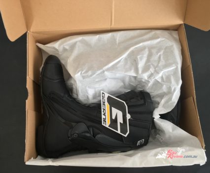 The G-RW a sporty feeling boot that boasts plenty of great features. The boot features a 3D Dry-Tech lining, which is claimed to be waterproof and also very breathable, an anti-slip rubber sole and removable insole. The fit itself is pretty snug, but still fits great even with leathers over the top. The boot is available with an RRP of $279.95.