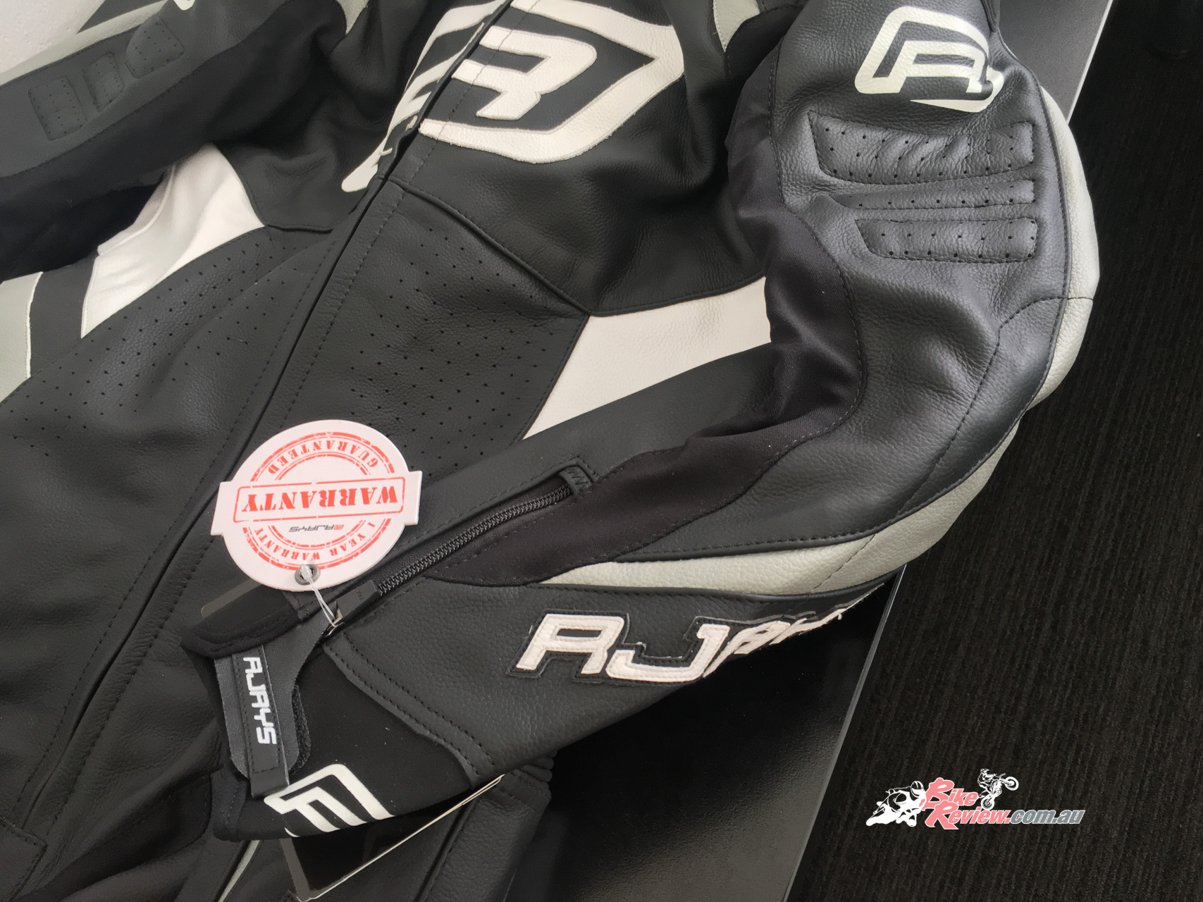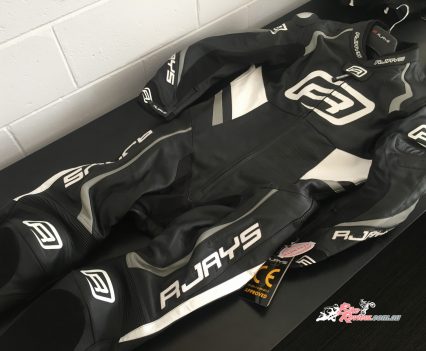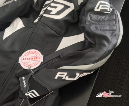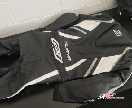 The Stealth III is a full, one-piece race suit from RJAYS. Available for $699.95 RRP, the suit has heaps of features, including perforated leather for ventilation, stretch panels for a more comfortable fit, race weight leather, a race hump, CE level two moulded plastic, aluminium reinforced shoulder armour, and CE level two armour at the elbows and knees/shins.