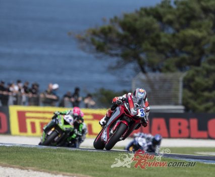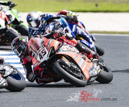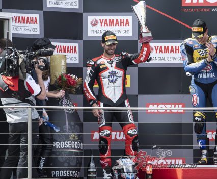 Sunday’s racing missed new rider to the championship, Texan Garrett Gerloff (Yamaha) and Eugene Laverty (BMW) – both out after nasty crashes in warm-up this morning.