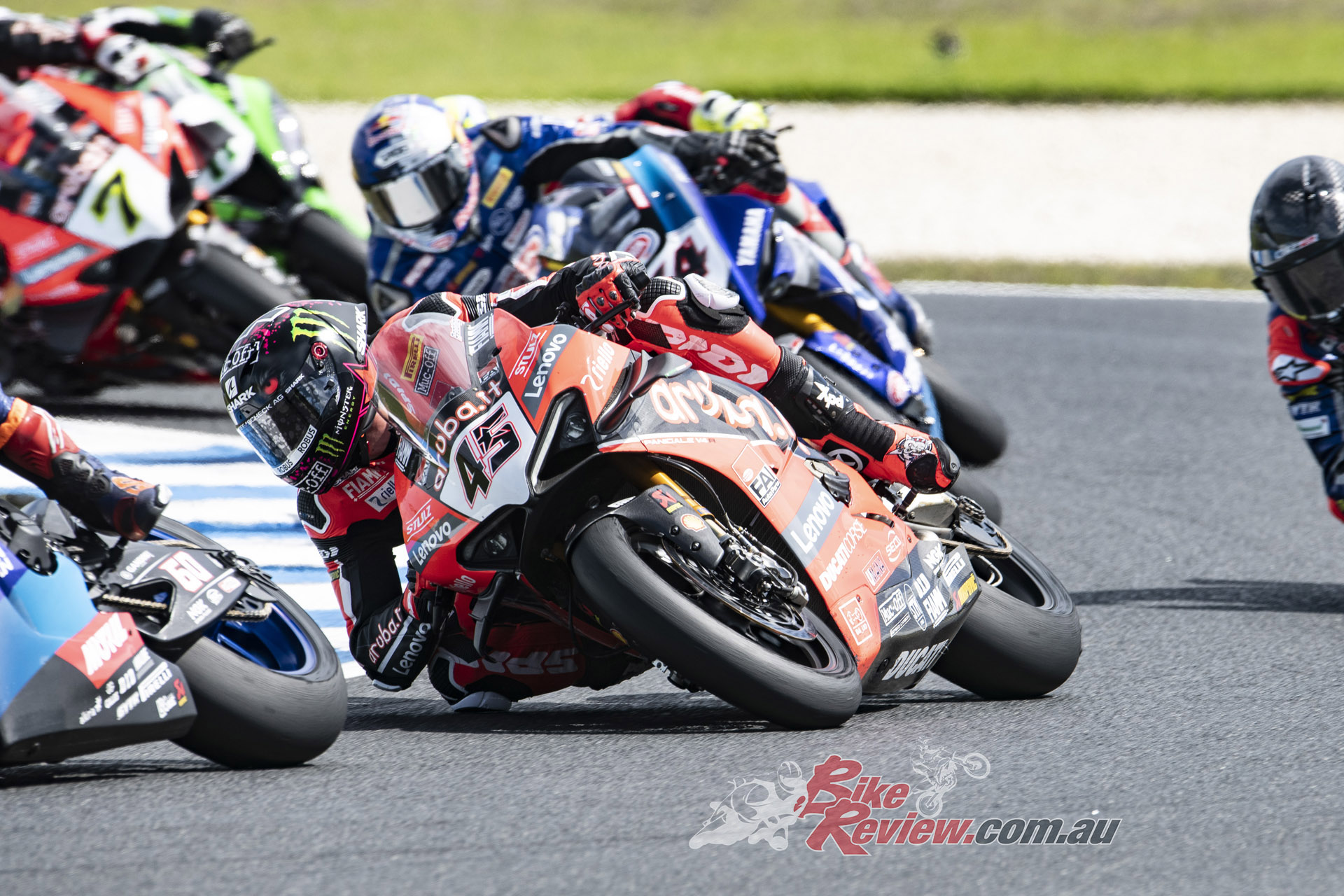 In a superb 22-lap afternoon race where 10 riders were running line astern at Phillip Island during the middle stages, it eventually boiled down to an intra-Kawasaki battle as Rea and Lowes turned the screws on their opposition.