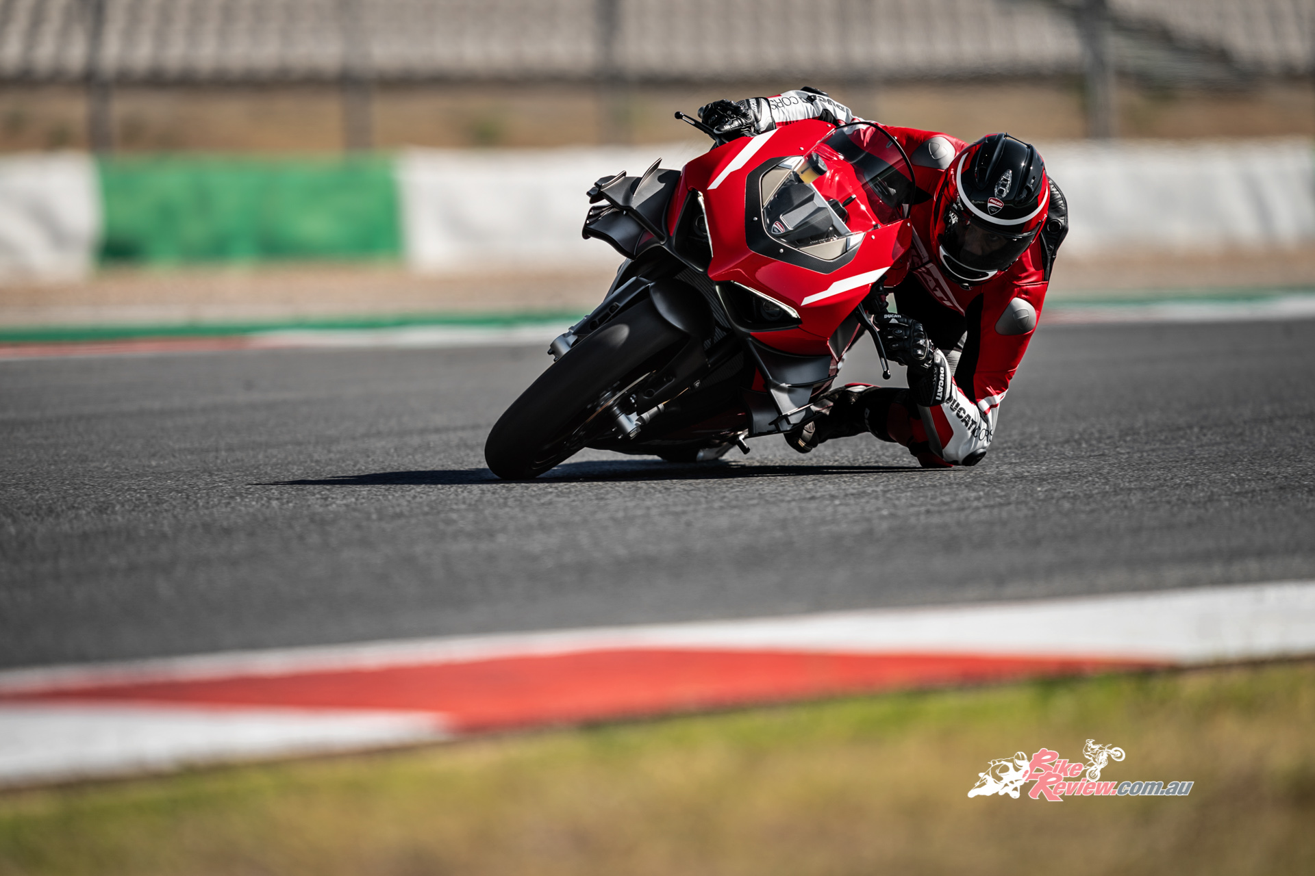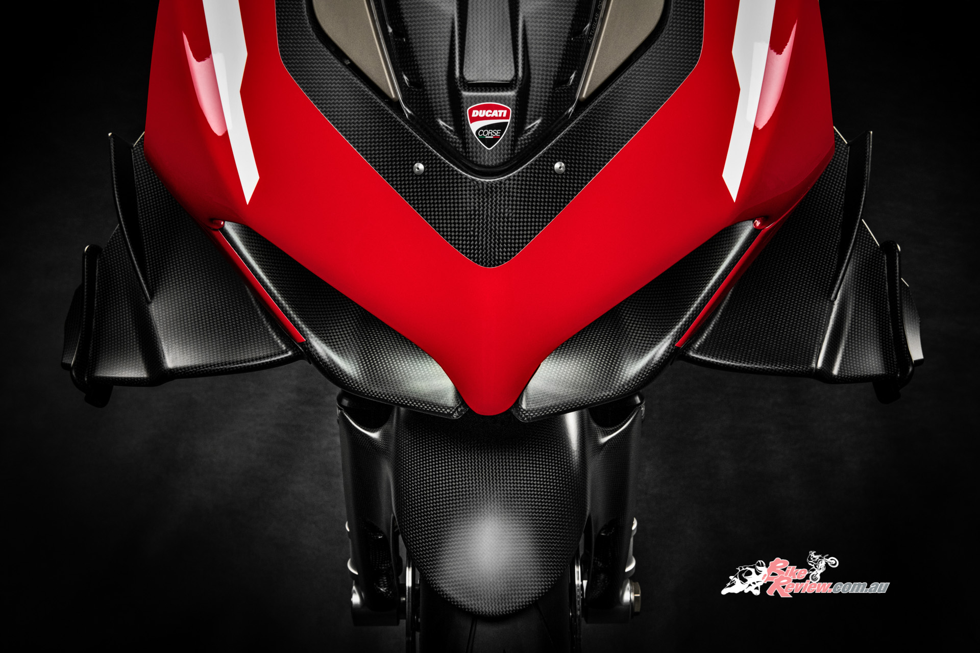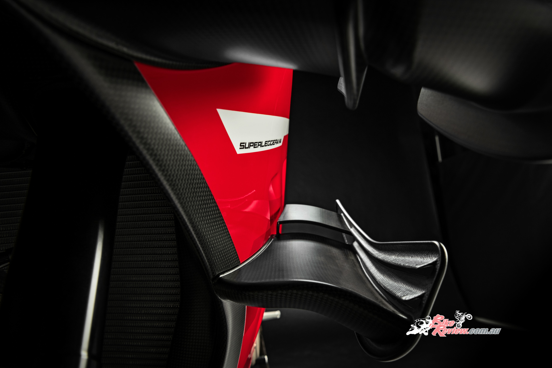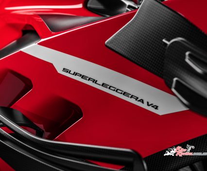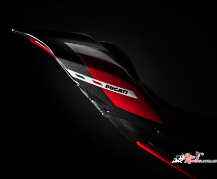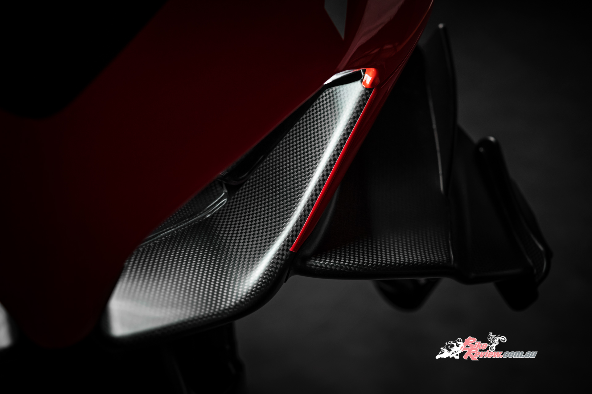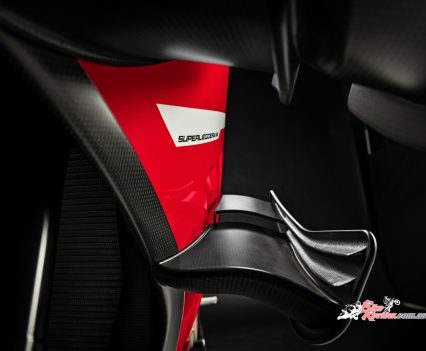 Underneath the carbon fibre bodywork reveals more of the Superleggera’s carbon fibre frame and new V4 motor.