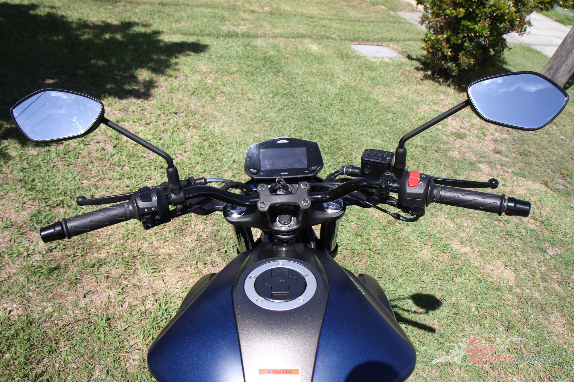 The riding position is more nakedbike than sportsbike. It is upright, but with a relaxed rider triangle.