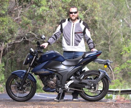Handling-wise, I have to say that it is narrow for lane splitting, nimble around town, easy for feet-up U-turns and generally super learner friendly in the city, but head out into the twisty roads and the GIXXER SF is equally as good. It thrives on big, wide old school corner lines and that suited this 1990s era rider here… I had an absolute blast on the Old Road, my favourite local stretch north of Sydney.