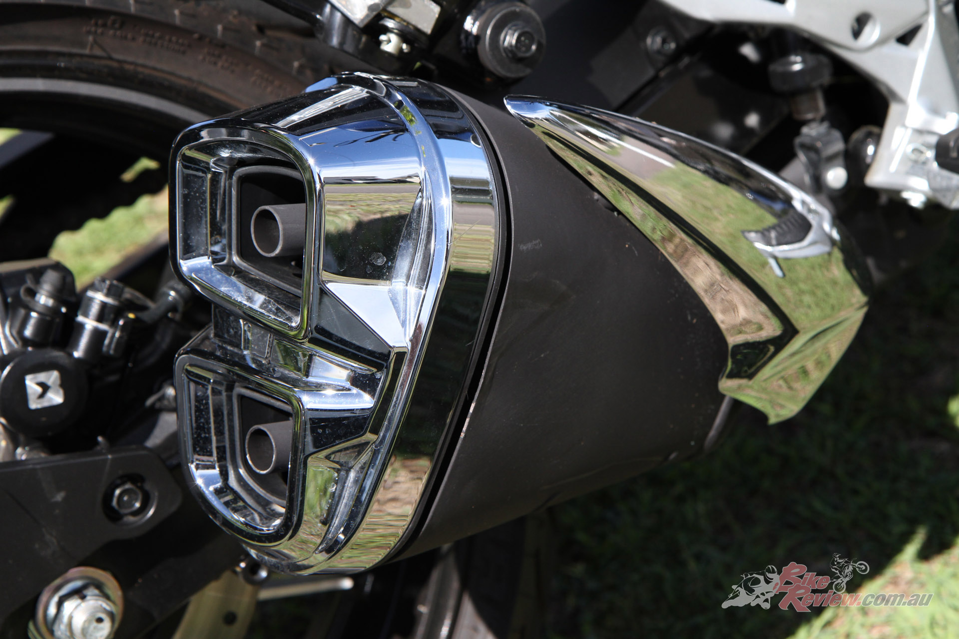 And both bikes have some nice detail, like the finish on the clutch cover, rubber topped and mounted footpegs, folding mirrors on the SF, grab rails, ByBre brakes, and a cool chrome-tipped muffler. Oddly, both bikes have two rear mudguards, something that I just can’t explain!