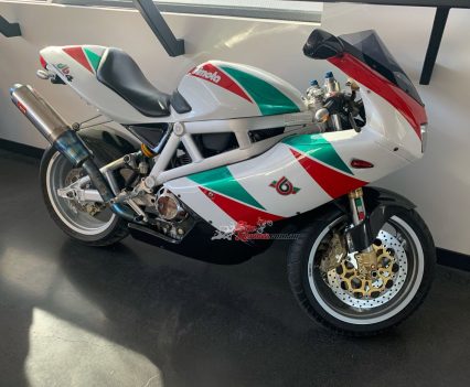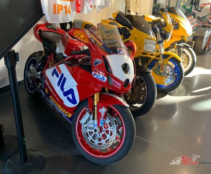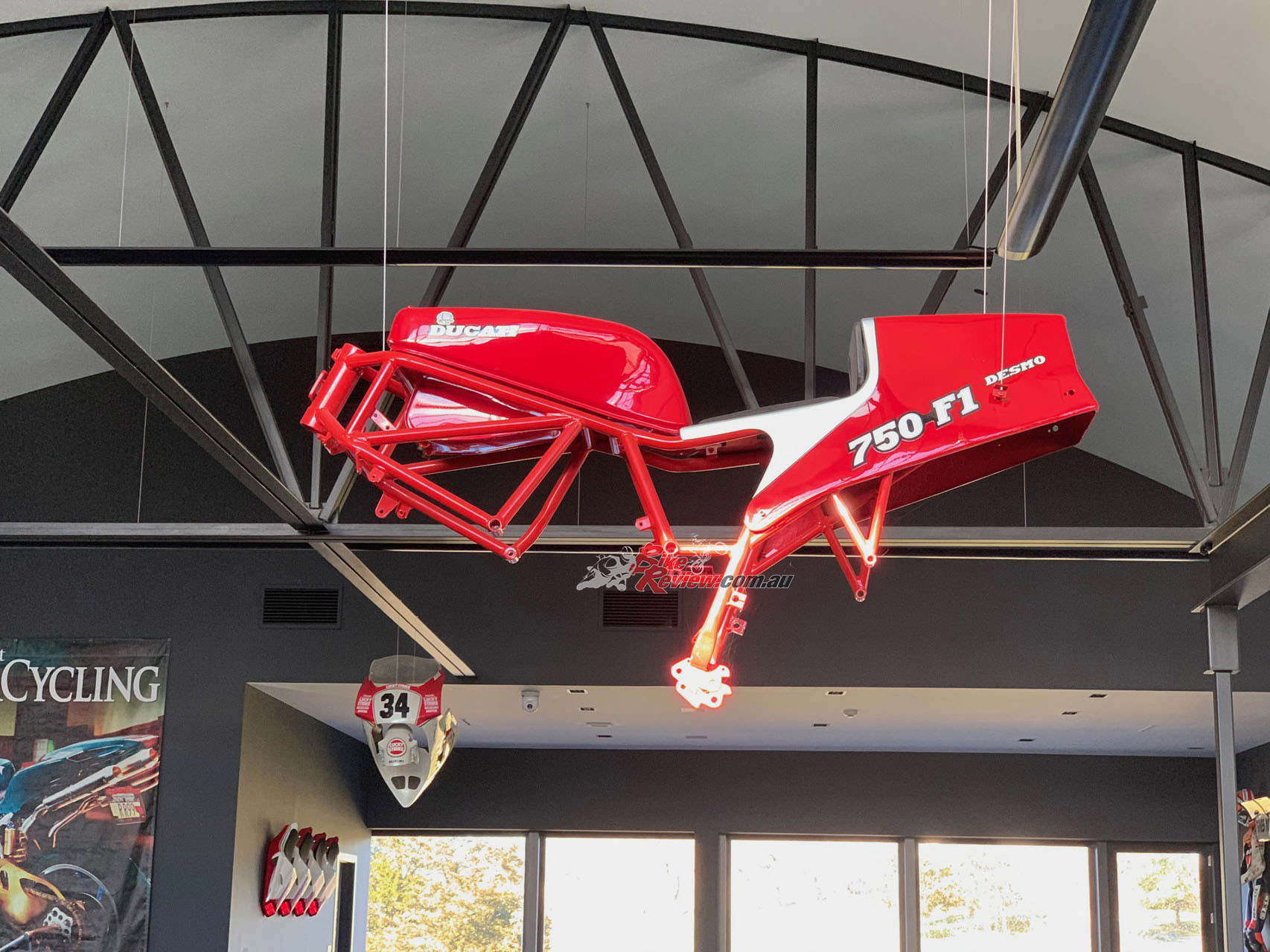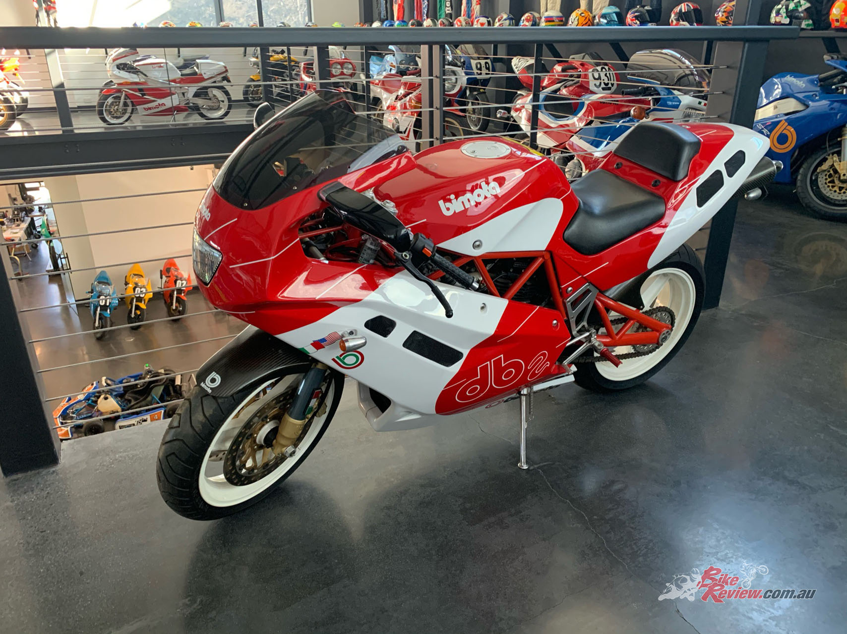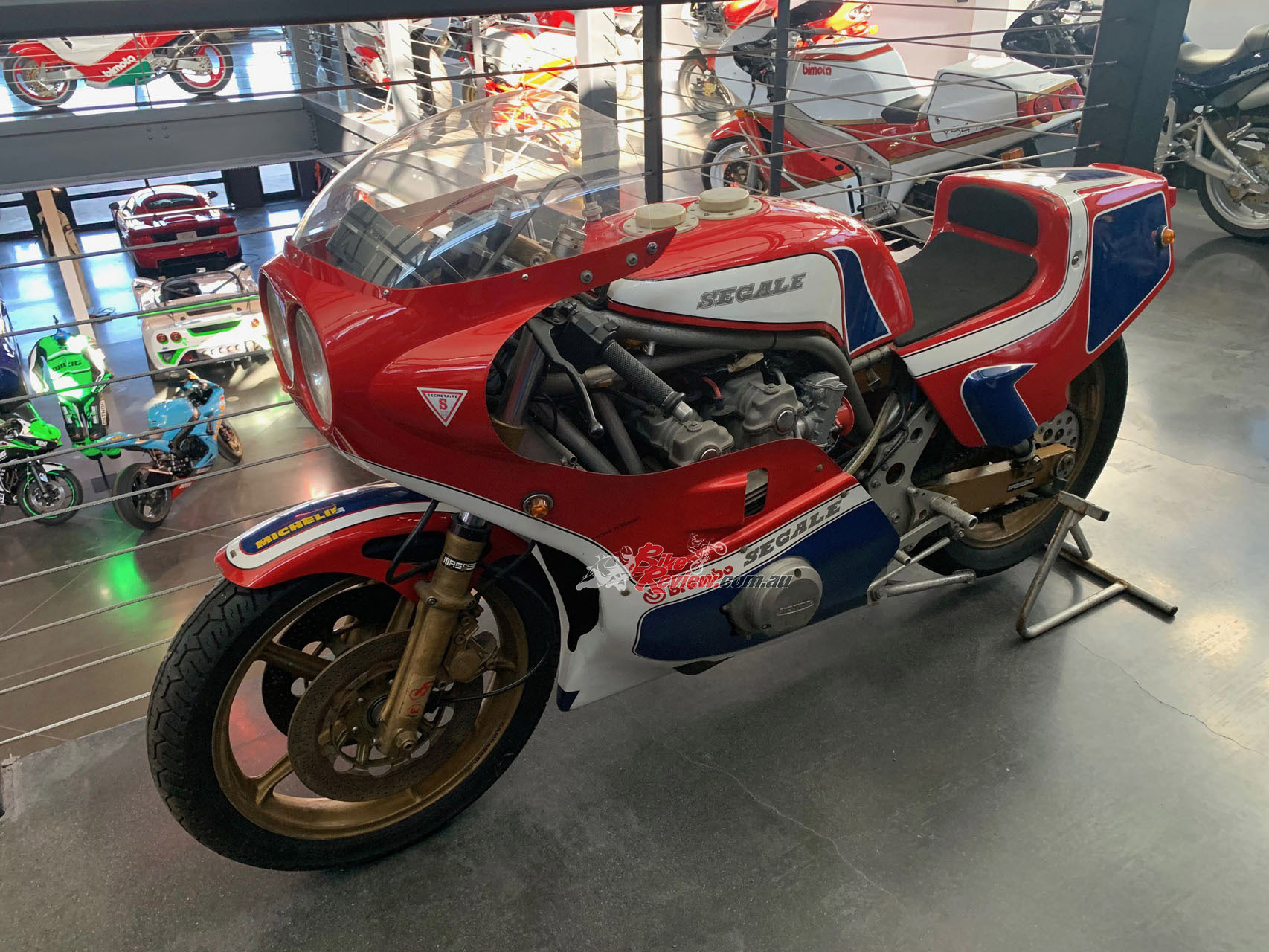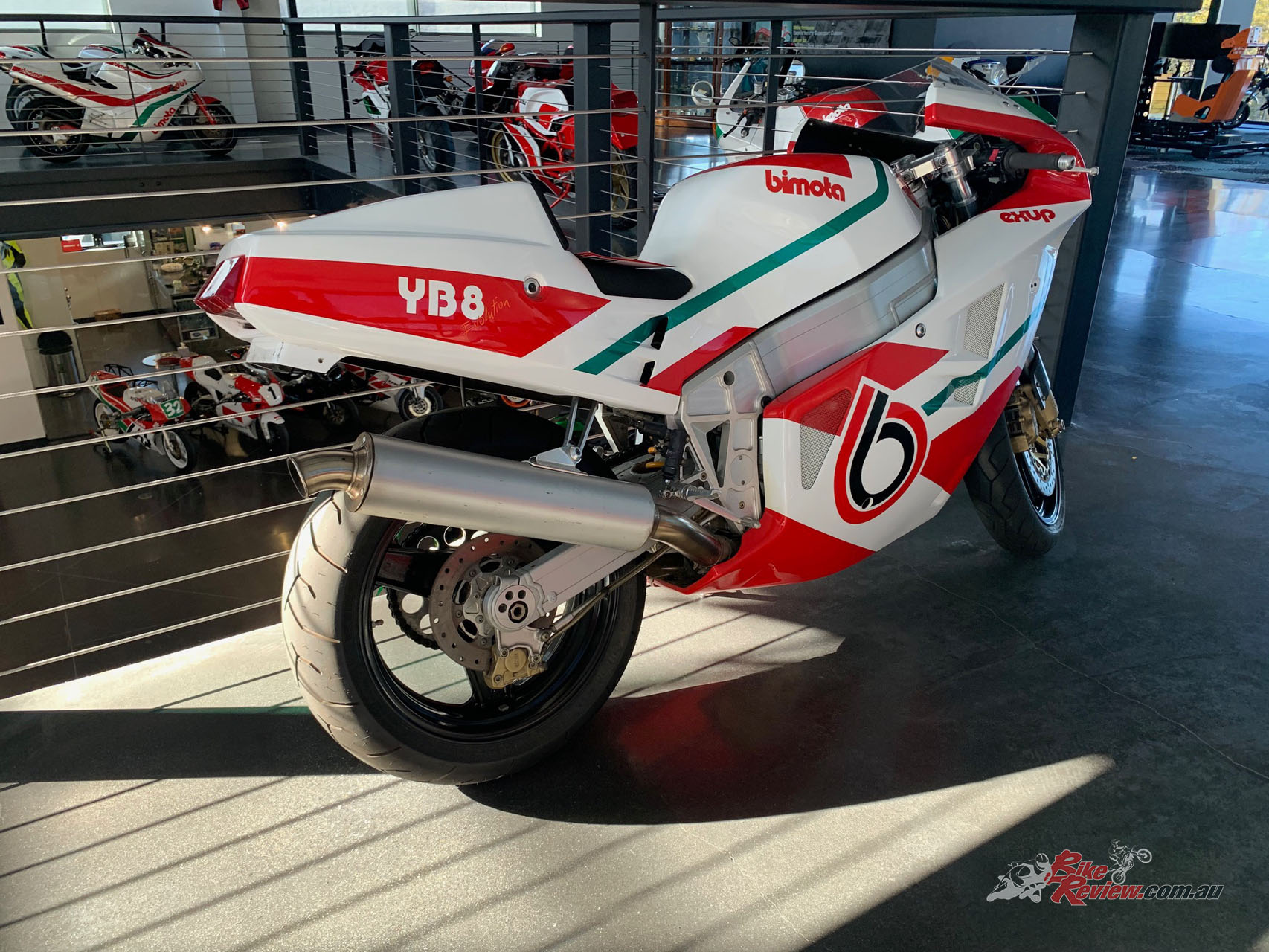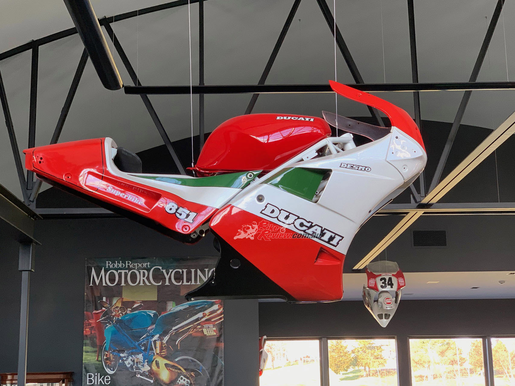 Upstairs placed around the perimeter pathway is the biggest collection of Bimotas I’ve seen. I counted 28 of them ranging from the first generations to the most current and the V-Due 500cc two-stroke model, which sent the storied brand into bankruptcy and the eventual hands of the Kawasaki group.
