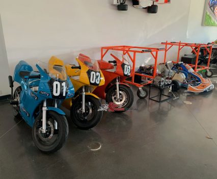 To encourage his friends to experience the thrills of knee down racing, Alan purchased three NSR50 two-stroke race bikes for visitors to practice on. These little demons absolutely rip and are infinitely “chuckable” allowing beginners to really get the feel for leaning into corners without the fear of being bucked by a full-size race bike and ending up in the kitty litter.