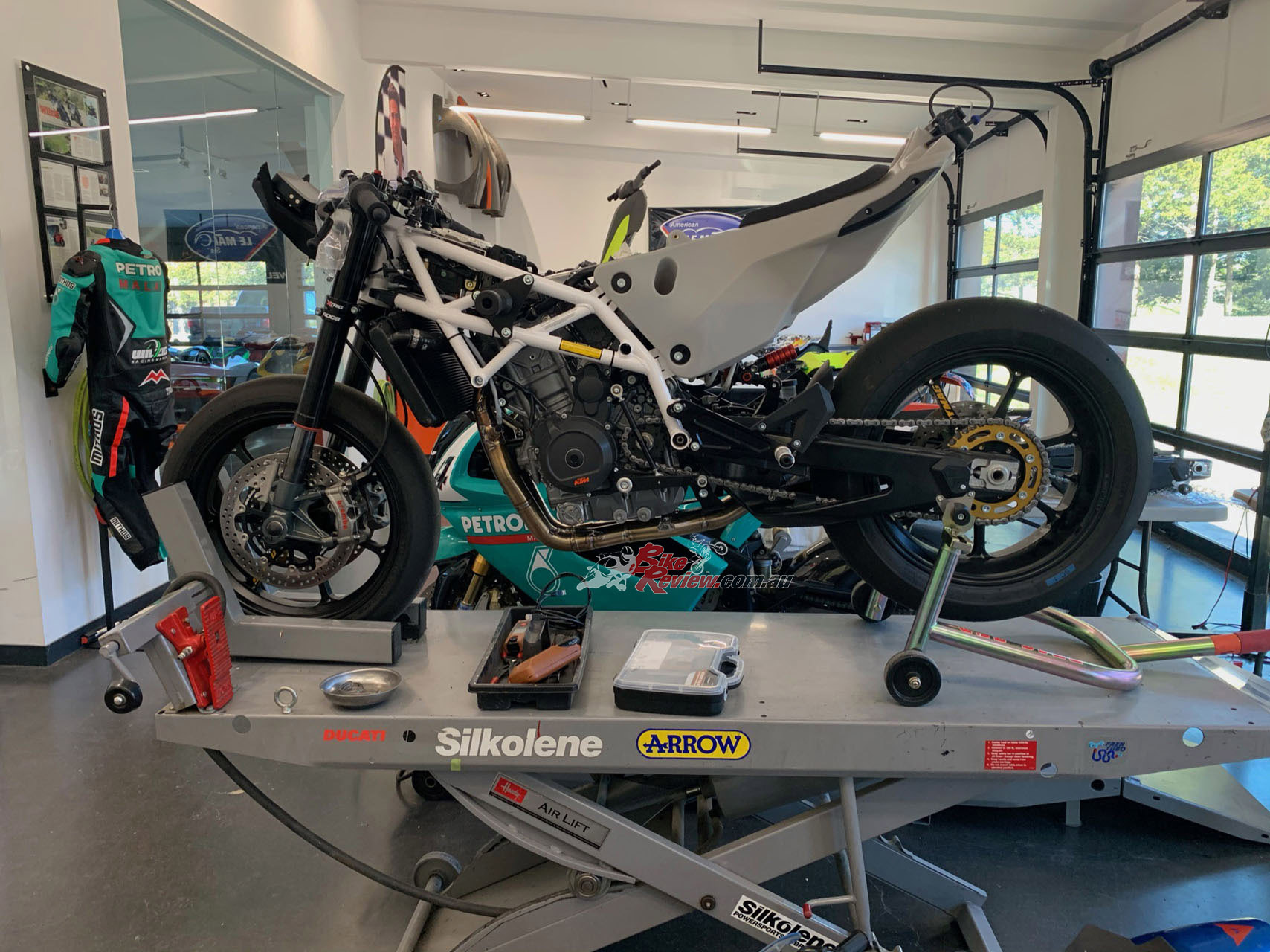 When it comes to riding Alan tells me there really is no challenger to his favourite bike, the Krämer GP2 890R. A purpose-built race bike from designed by the German manufacturer and built and supplied from the US distributor. Alan says it was instantly competitive right out of the box without the need to tune and farkle a street bike like the Yamaha R3 or GSX-R600.