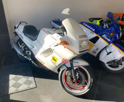 The most expensive bike in the collection and the one Alan would most love to ride is the Honda NR750 RC40, a super rare collector bike he purchased a decade ago from Japan. Its speed is only rivalled by its appreciation in value, now the most expensive bike in the collection. No wonder he hasn’t ridden it. Oval pistons. Phew…