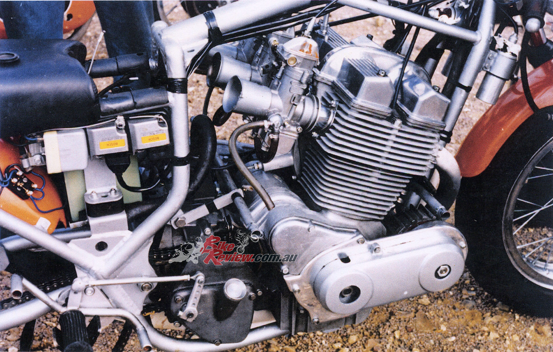 The Endurance debut of the 3C 1000 took place in that September’s Bol d’Or 24hrs held on the Bugattti circuit at Le Mans, with Brits Tony Melody and Doug Cash riding a bike with a modified chassis, which retired after five hours with gearbox problems. The new frame raised the engine 30mm to reduce the chances of decking the alternator mounted on the right end of the crank in turns, but this only added to the bike’s top-heavy feeling compared to the sweet-handing SFC twin.
