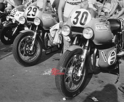 “Our disadvantage with the three-cylinder Spaceframe against the four-cylinder Honda and Kawasaki bikes was not so much power, as weight,” says Piero Laverda, an ever-present in the pits at that year’s FIM Endurance rounds. “Our four-cylinder competitors were about 172-175 kilos without fuel, but we were 200.5kg! I remember the Honda RCB factory Endurance model looked like a GP machine prepared by the same people who later made their 500GP bikes in the Reparto Corse. Our bike was really just a road racer derived from an improved standard machine, so in the 24 hours we often got a good result, because remember, in Endurance racing to finish first, you first must finish!”