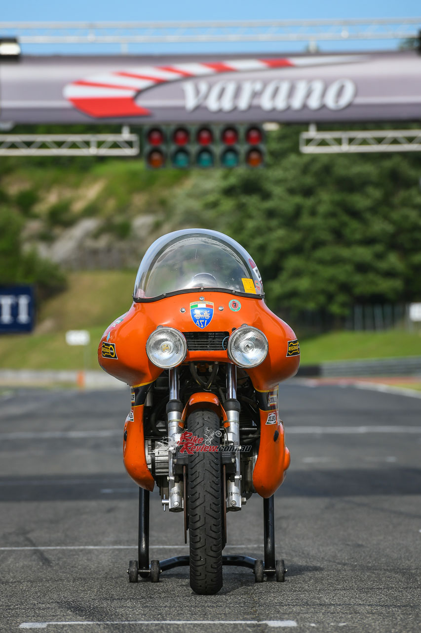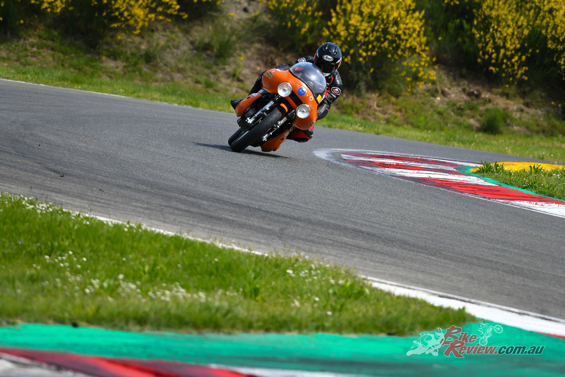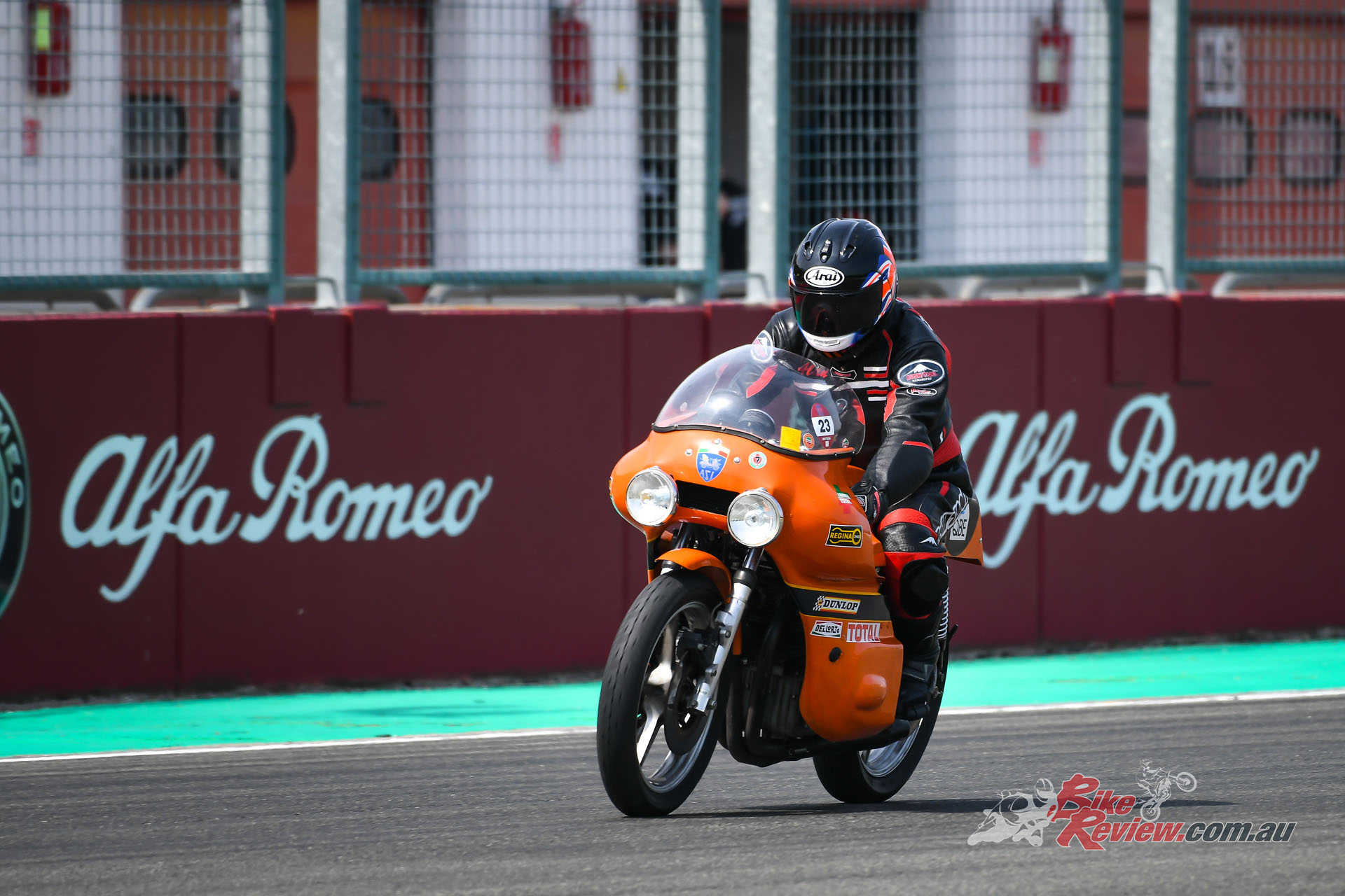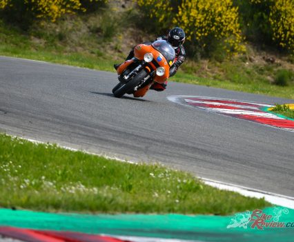 AC had the honour of two sessions on the busy 12-turn 2.38km Varano circuit aboard a bike whose engine remains essentially untouched since it was built up in 1976 after Laverda had retired from racing.