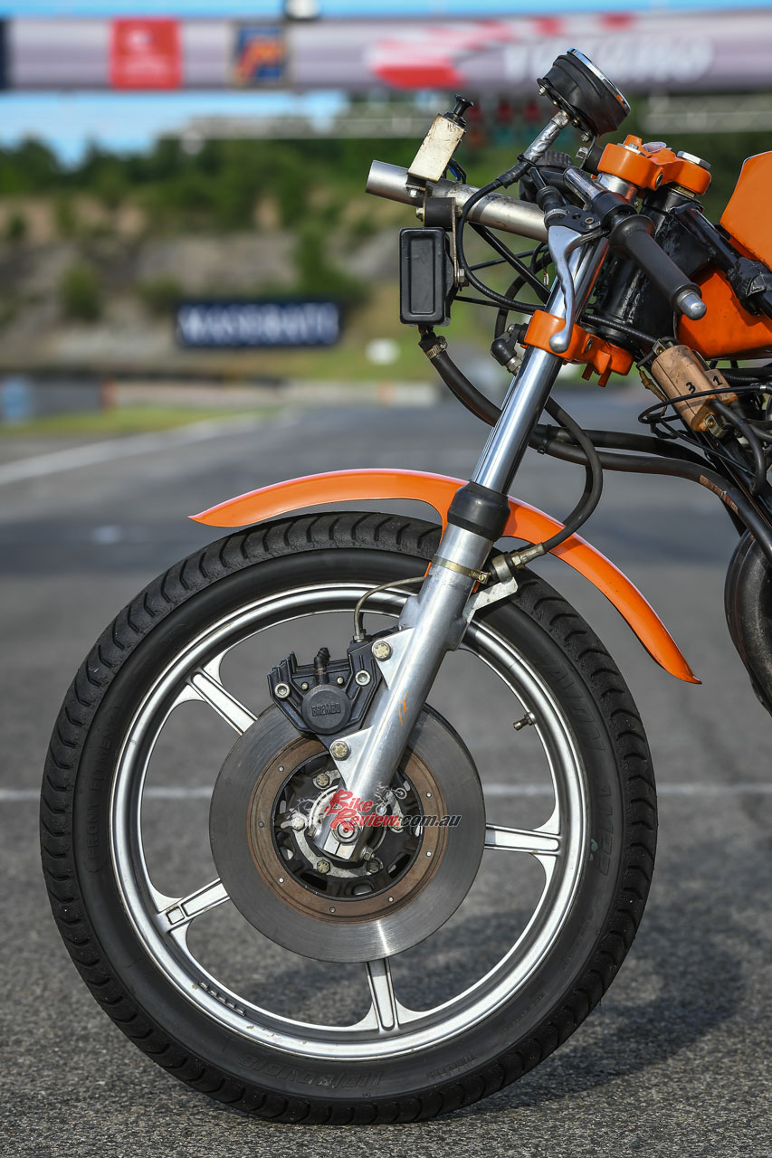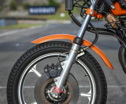 “The chosen front end geometry allowed it to tip into corners easily and controllably, both hard on the brakes, and at a faster pace – the problem came in lifting it up and over for the exit….”
