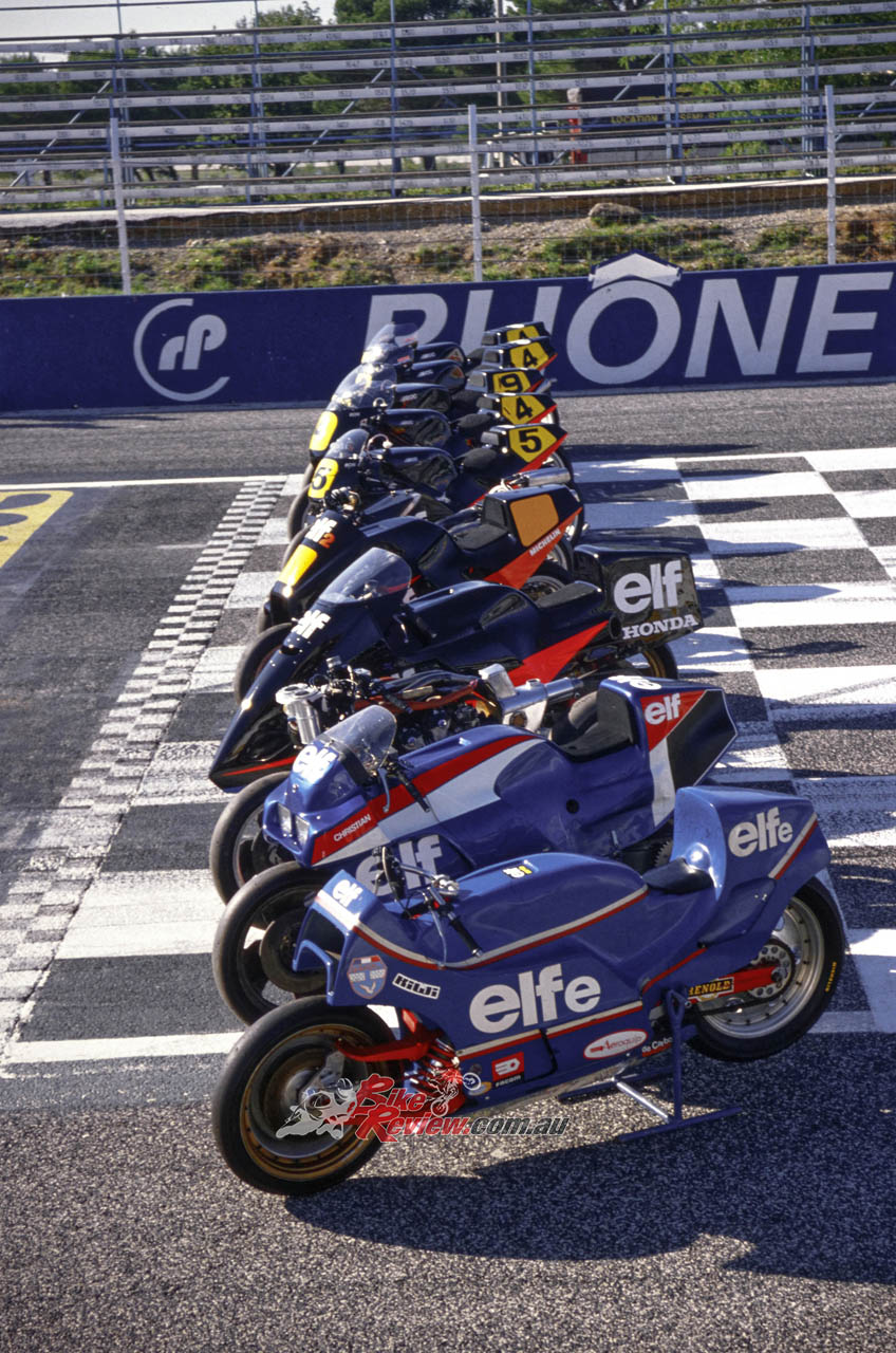 1988: The NSR500-engined ELF5 takes Haslam to 11th in the World Championship, and proves the fundamental worth of the Trema/Rosset design module. ELF retires from direct involvement in racing at the end of the season…..