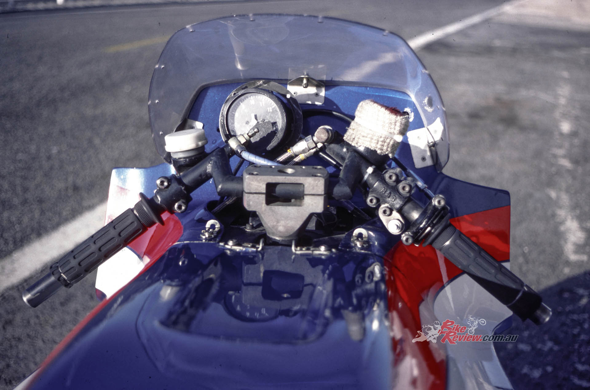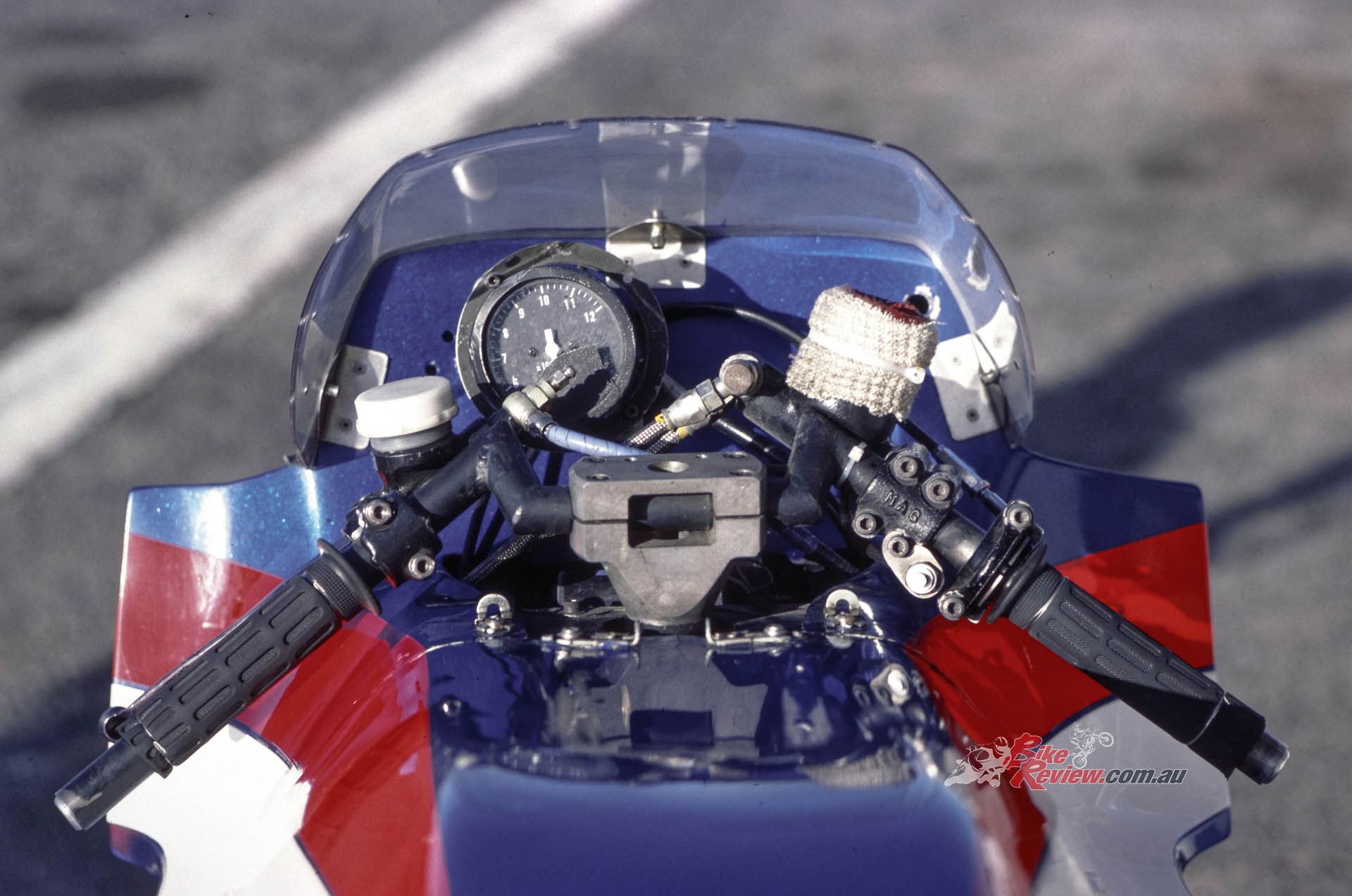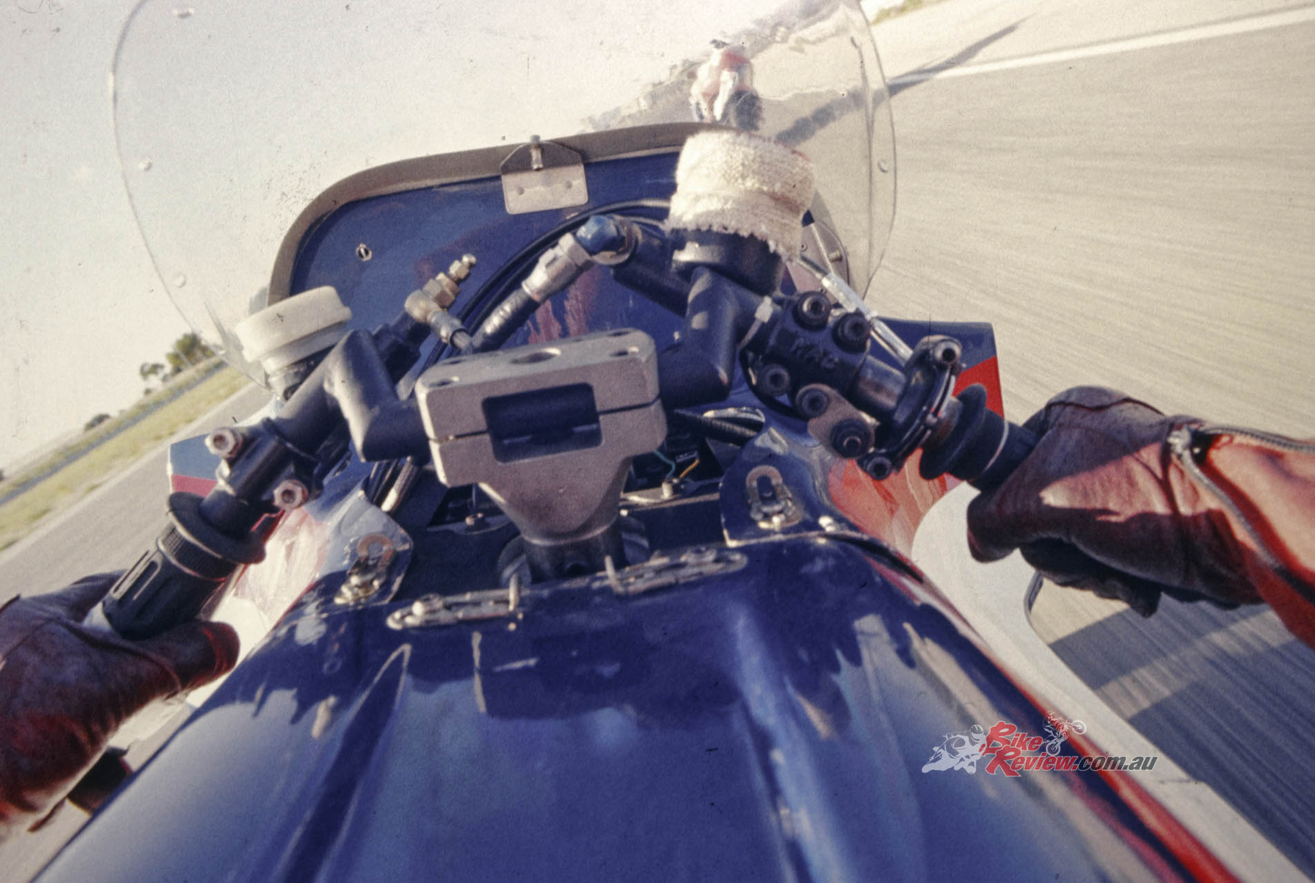 Welcome to the world of trail braking into a turn – something that’s taken for granted nowadays on tele-forked bikes with properly dialed in upside-down forks, but which back then would have been an invitation for the front suspension to freeze, resulting in a locked front wheel, and a trip to the kitty litter. That in turn meant you could brake yards later than the opposition: Leliard for example was braking at the 90-metre mark in practice for the Bol that year at the end of the Mistrale Straight – that’s from a terminal speed of over 280km/h!