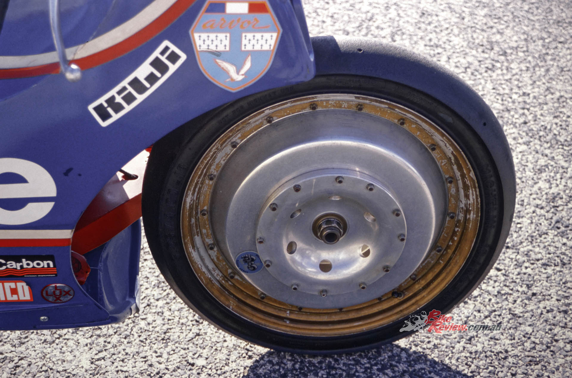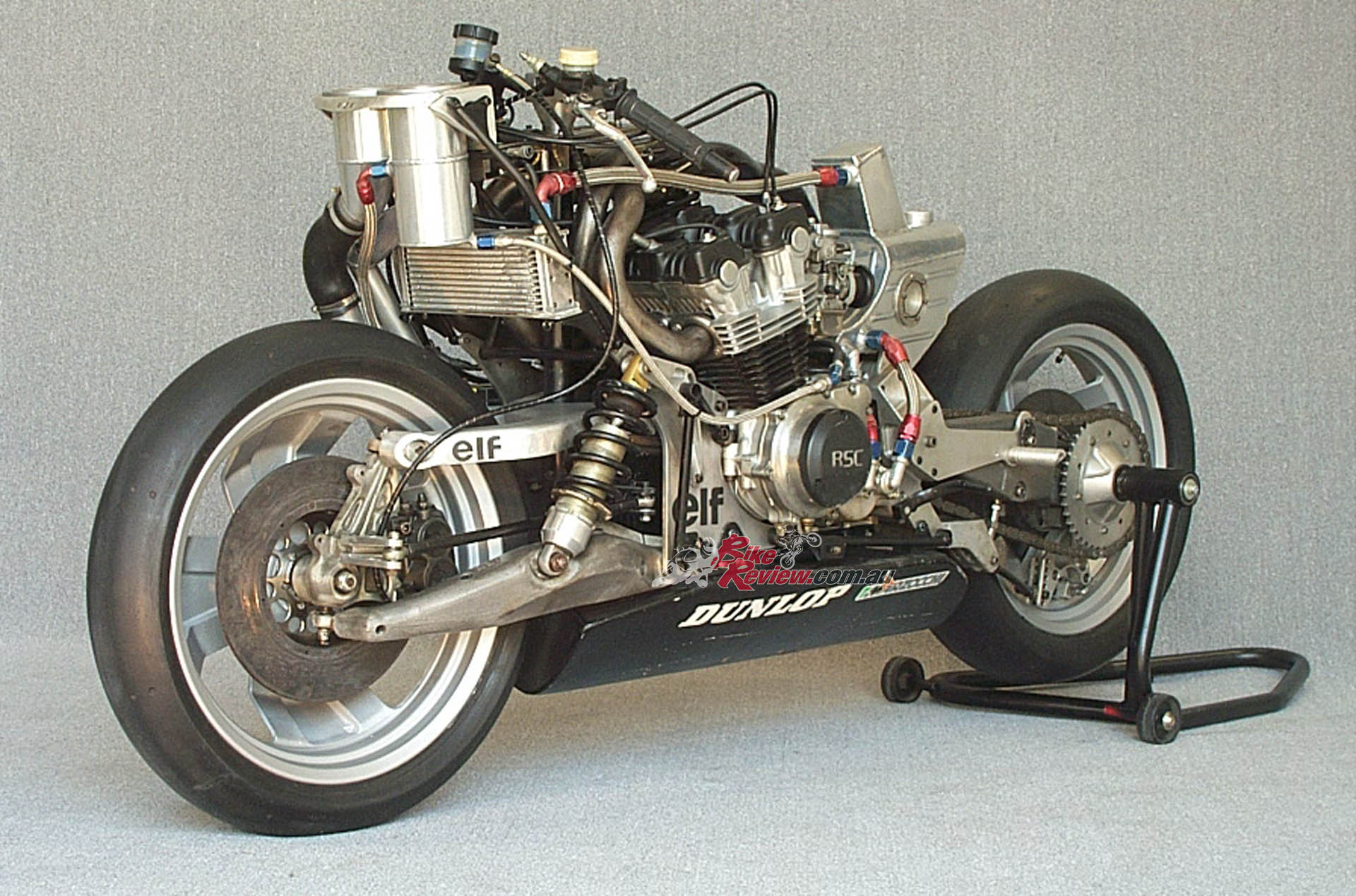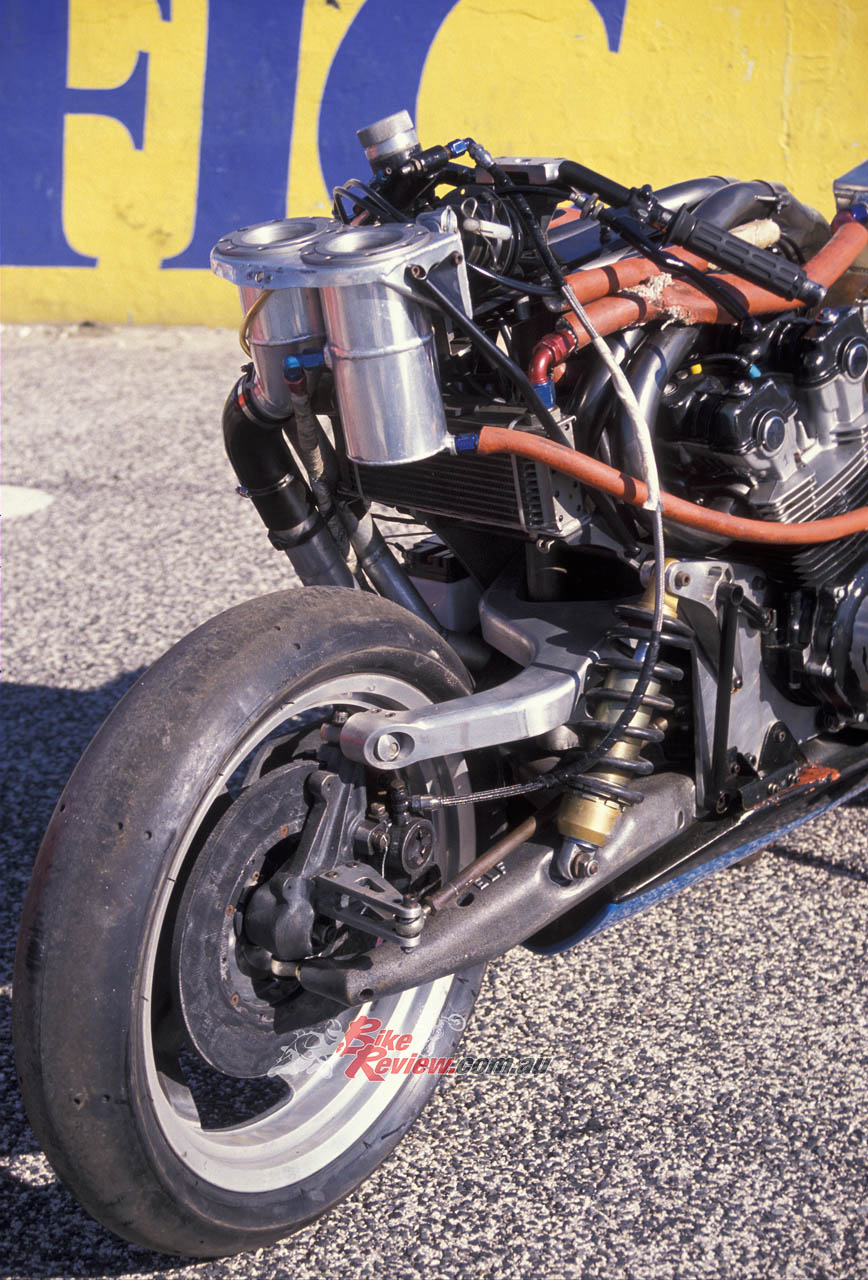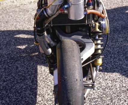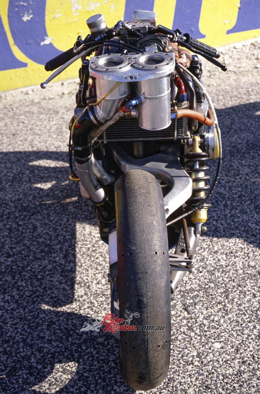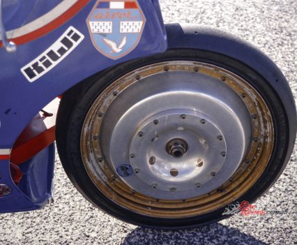 “The front in particular was unusual because it was much wider than usually fitted to other bikes, to be able to accept the extra cornering and braking forces.”