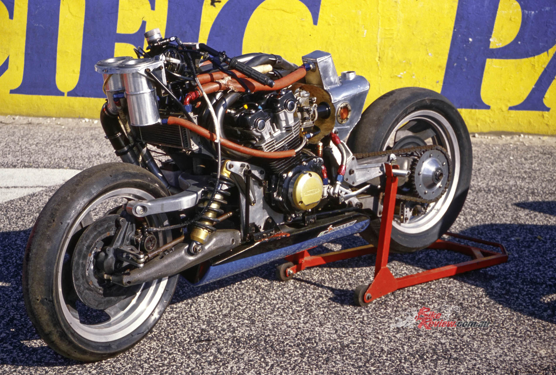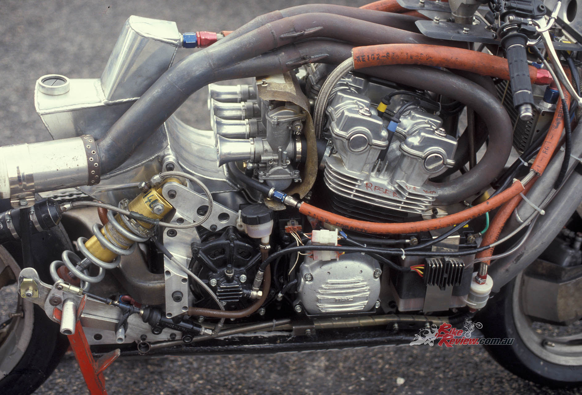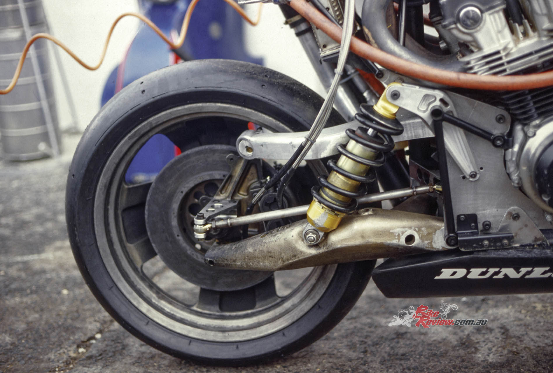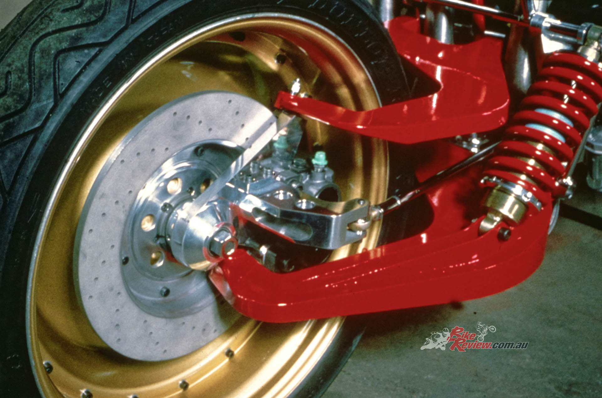 “The front in particular was unusual because it was much wider than usually fitted to other bikes, to be able to accept the extra cornering and braking forces.”