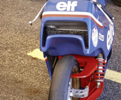 In 1977 ElF’s François Guiter gave de Cortanze the money to produce such a bike, and the TZ750-engined ELF X which appeared in 1978 was the result.