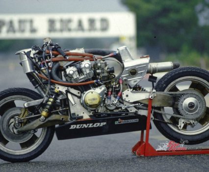 40 years ago in the 1980s there was a proliferation of radical approaches to motorcycle design. Chassis development had been increasingly unable to cope with the fruits of the horsepower race among the Japanese manufacturers. Hence the controversial move to reduce the capacity limit of TT Formula 1 racing from 1000cc to 750cc for 1984, and the decision of the FIM, prompted by Japanese manufacturers, to explore reducing the 500GP limit to 400cc as a way of reducing power, and thus speeds. But several viewed this as stop-gap thinking: inevitably, a couple of years on those downsized 750s would be producing the same sort of power as one-litre bikes today.