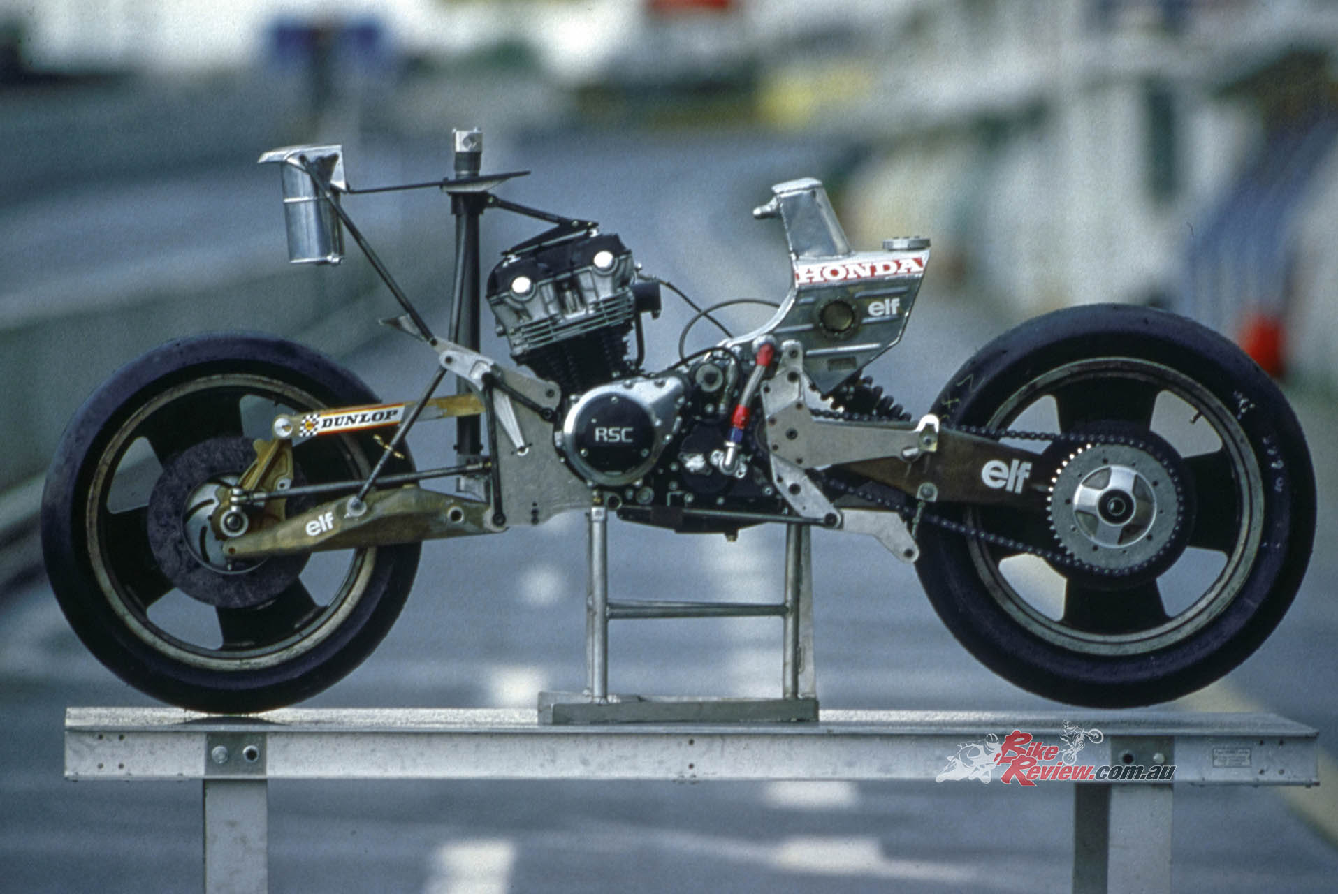 Leliard: “Dunlop’s participation will pay off for them tenfold, because in five years’ time all racing bikes will be like this. They have to be: the engines are now producing far more power than the present relatively primitive frames can handle, so the only possible way ahead is to concentrate on developing completely new concepts in motorcycle chassis design. We already have such a bike in the ELFe.” But Walter Villa went further: “It’ll be more than that. In 15 years from now all high-performance street motorcycles will have the same configuration as the ELF – it’s as day follows night. This is the way of the future – the ELF really is tomorrow’s motorcycle today.” Time would tell that wasn’t to be the case….