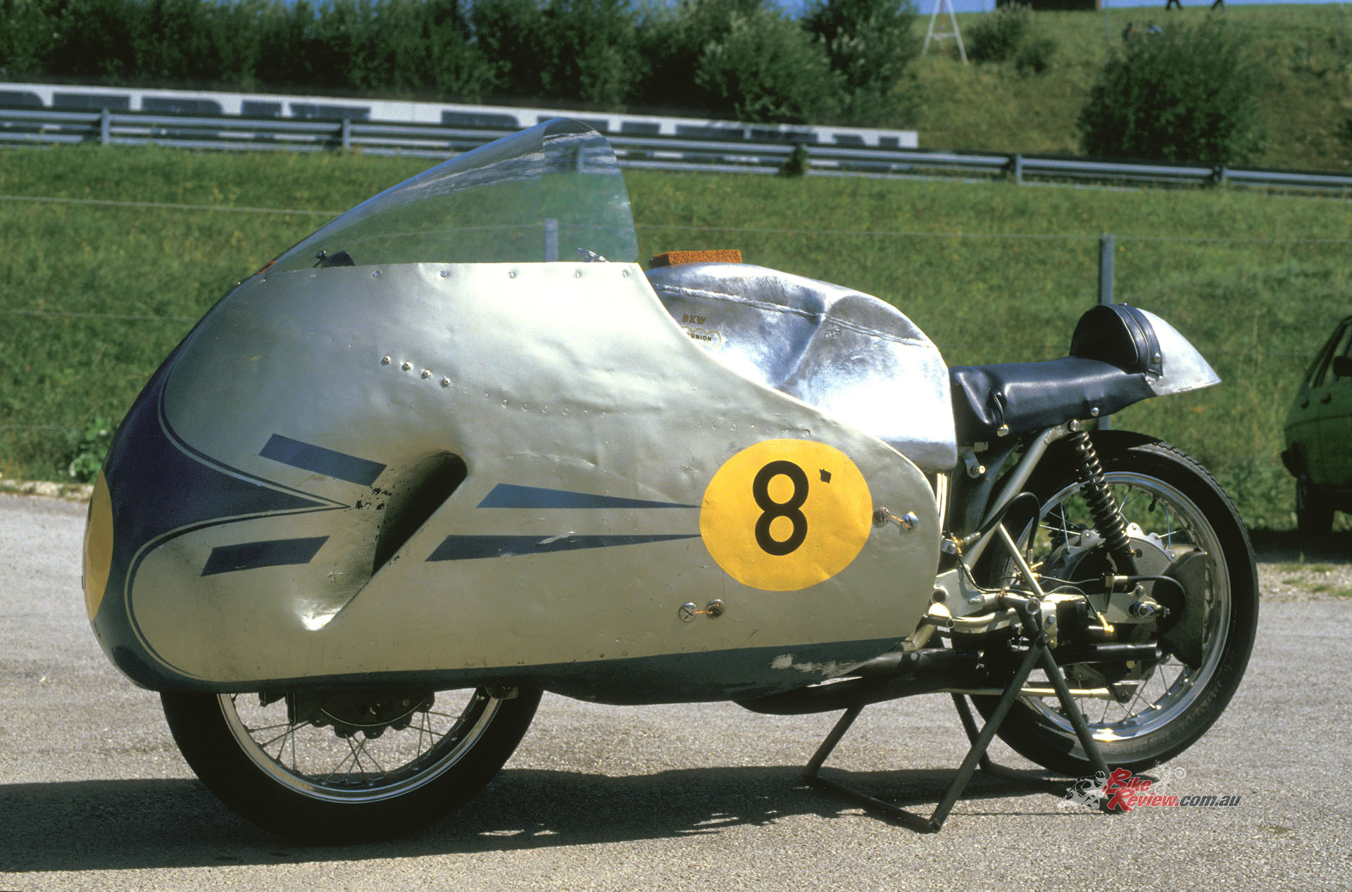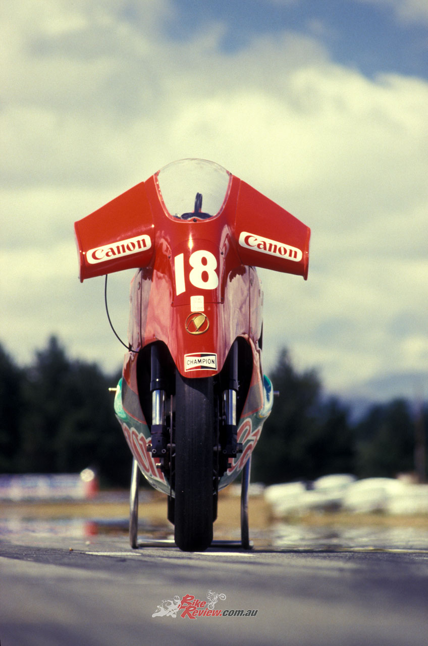 John Britten teamed up with Bob Denson to create one of the most interesting looking road-racers of the period. The Aero-D-One V1000… it was more widely known in NZ racing circles as the ‘Winged Wonder’.