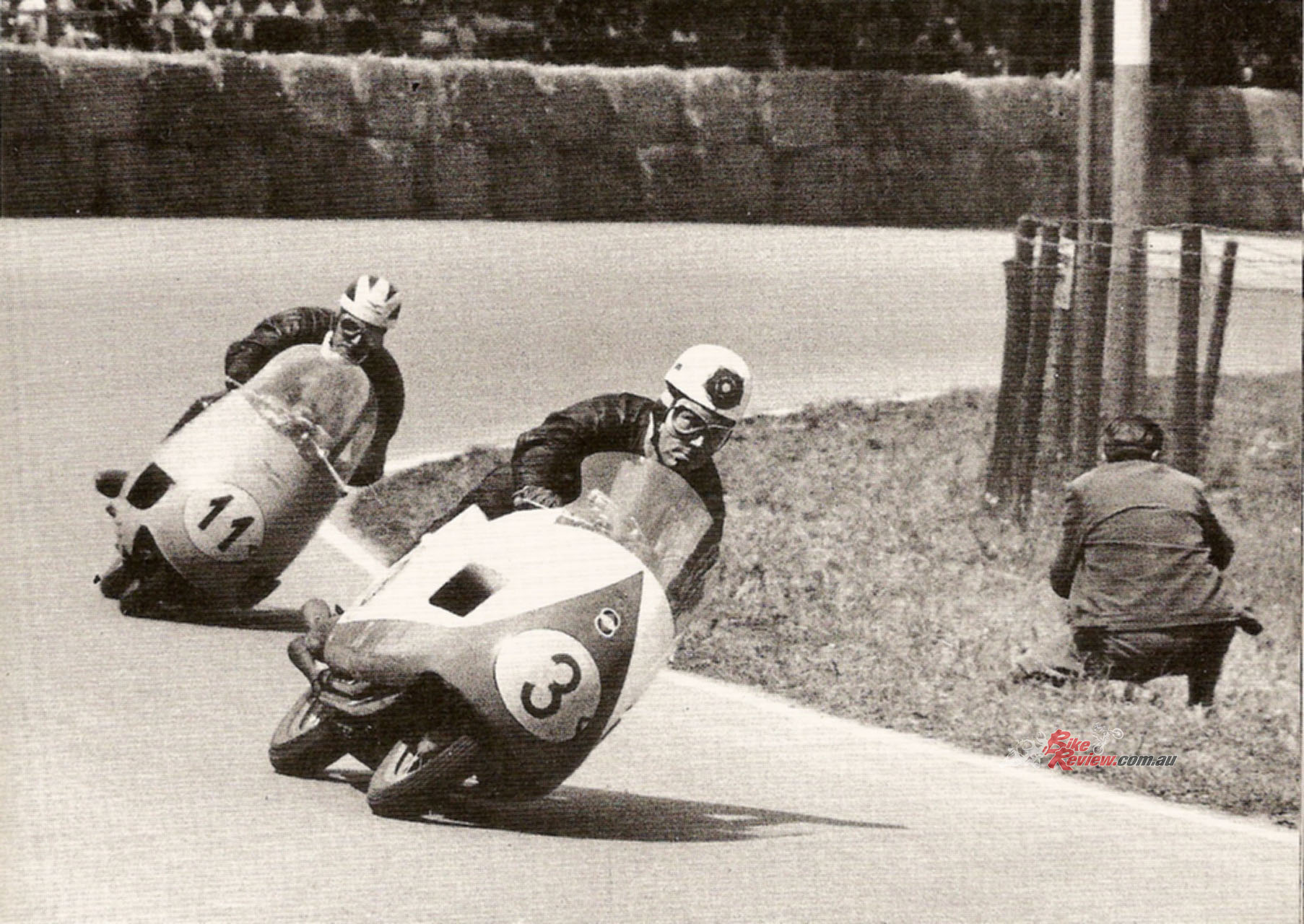 So, it was in theory like an upside-down aircraft wing, which became effective when the bike was banked over in a turn, with the rider hanging off in the opposite direction. OK – but what happens when you hit a spot of turbulence – like the slipstream of a rider in front of you, or worse still, a whole bunch of them? Well, that was the point of going racing, precisely to discover the bike’s response to such situations, and to develop a counter to them…..