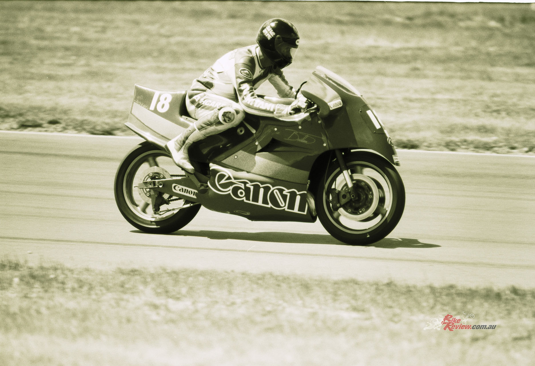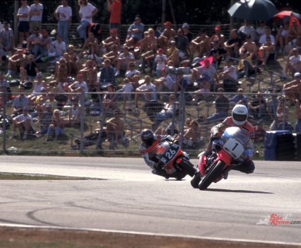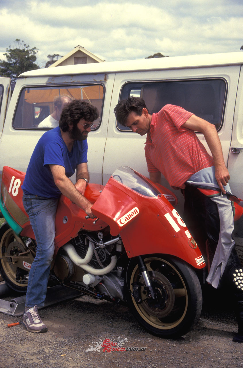 Thanks to the heavy springs needed to overcome the strong suction effect of that deep-breathing engine, the Amal carbs’ throttle was way too stiff and harsh, so it was not only difficult to work the twistgrip with any precision in slow corners, but this also made the bike quite tiring to ride, and meant blipping the throttle changing down under braking was very hard work. It had hardly any degree of sensitivity, making it difficult to accelerate cleanly and smoothly out of a tight infield turn. But the performance of the twincam eight-valve engine was truly impressive – I had a drag race down the straight with Robert Holden on the Honda Australia RS500 GP racer-beating ex-Kevin Magee 851cc Bob Brown Ducati I would later come to own and race, and the Britten just walked away from him – it was truly impressive, a very muscular motorcycle.