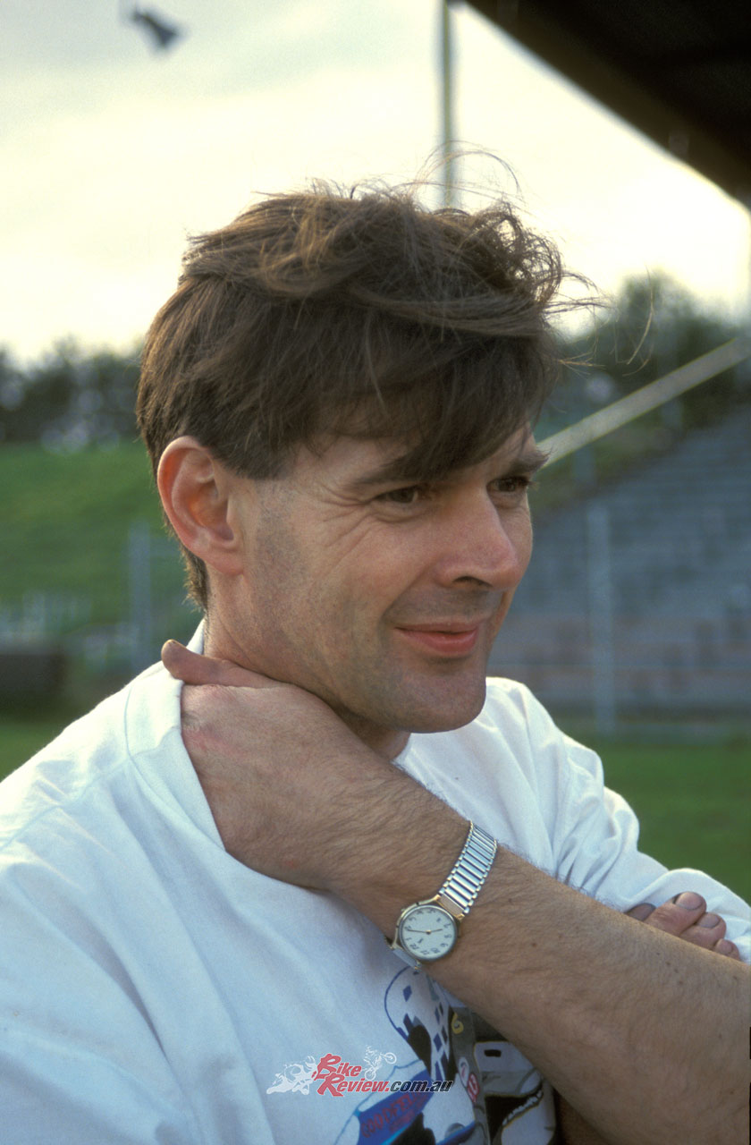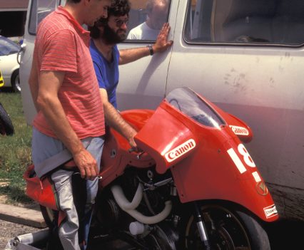 I first met John Britten in December 1987 on a grass bank overlooking Manfeild [sic] race circuit in New Zealand’s North Island, during the European winter I spent racing in the NZ National BEARS Championship. We were both in our racing leathers, having strolled out from the paddock to watch practice and check on track conditions.