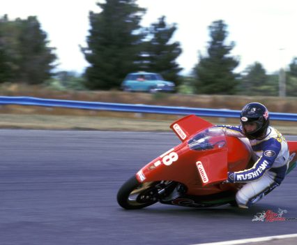 After 20 laps of Ruapuna I thought I had the measure of the Winged Wonder, faults and all – and it was indeed extremely fast in a straight line, plus with a 1:1kg/bhp power to weight ratio, it accelerated like a startled kiwi, too. So when the engine of the Ducati broke later that practice day on which I was leading NZ’s hotly-contested 1987/88 BEARS National series, I jumped at John Britten’s generous offer from his hospital bed to try to clinch the title in the final round of the series by racing his Denco-powered device that weekend at Ruapuna. A fairytale result seemed on the cards when the motor’s 120hp took me from fourth to first place in one go down the main straight ending lap 1 – but when seemingly set for victory five laps from the flag, first became second, then second became third place, as the engine began intermittently cutting out on one cylinder. But so long as I finished ahead of the Bimota DB2 which was my closest championship rival, the NZ title would be mine – and he hadn’t passed me yet.