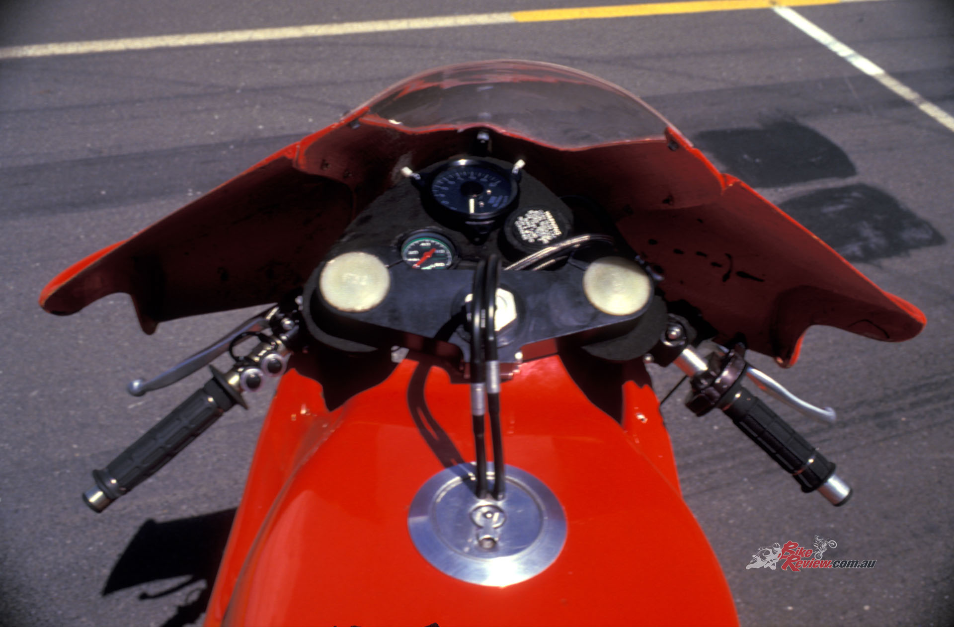“The cockpit felt strange with that tiny aero screen and the bat-like wings shrouding the handlebars, which on track gave a curiously remote feel to the steering, rather like riding a bike fitted with 1950s-style full-enclosure ‘dustbin’.”