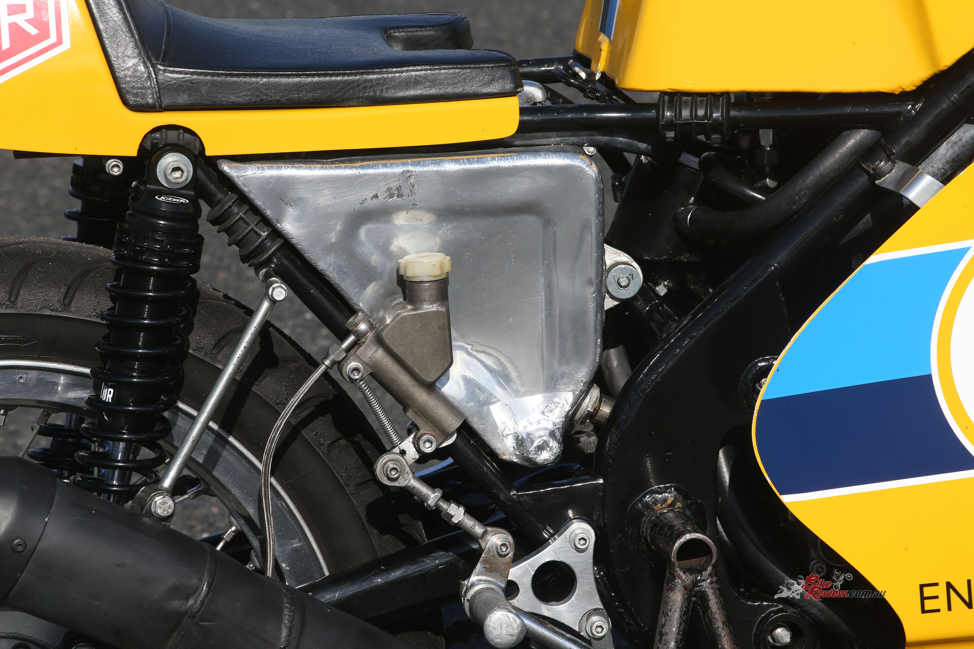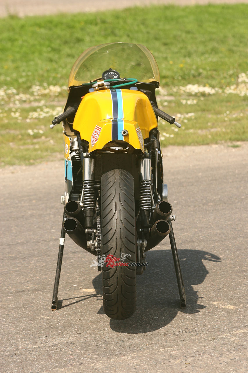 That surely explains the unobtainium RSC self-generating ignition system which Gordon Russell discovered when he rebuilt the engine, as well as the close-ratio RSC gearbox. Somewhat inevitably given the many racing miles the motor has undergone since leaving Bill Smith’s hands, its internals are now mostly stock, including the unlightened crank with polished conrods, but with what Russell describes as “a very nicely ported cylinder head” plus a racing camchain with modified tensioner and twin single-row primary chains, and a heavy duty drive chain.