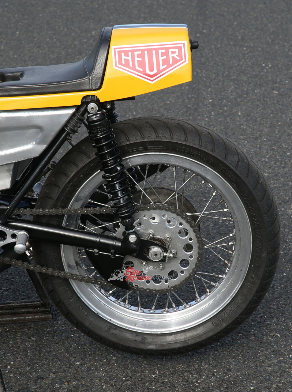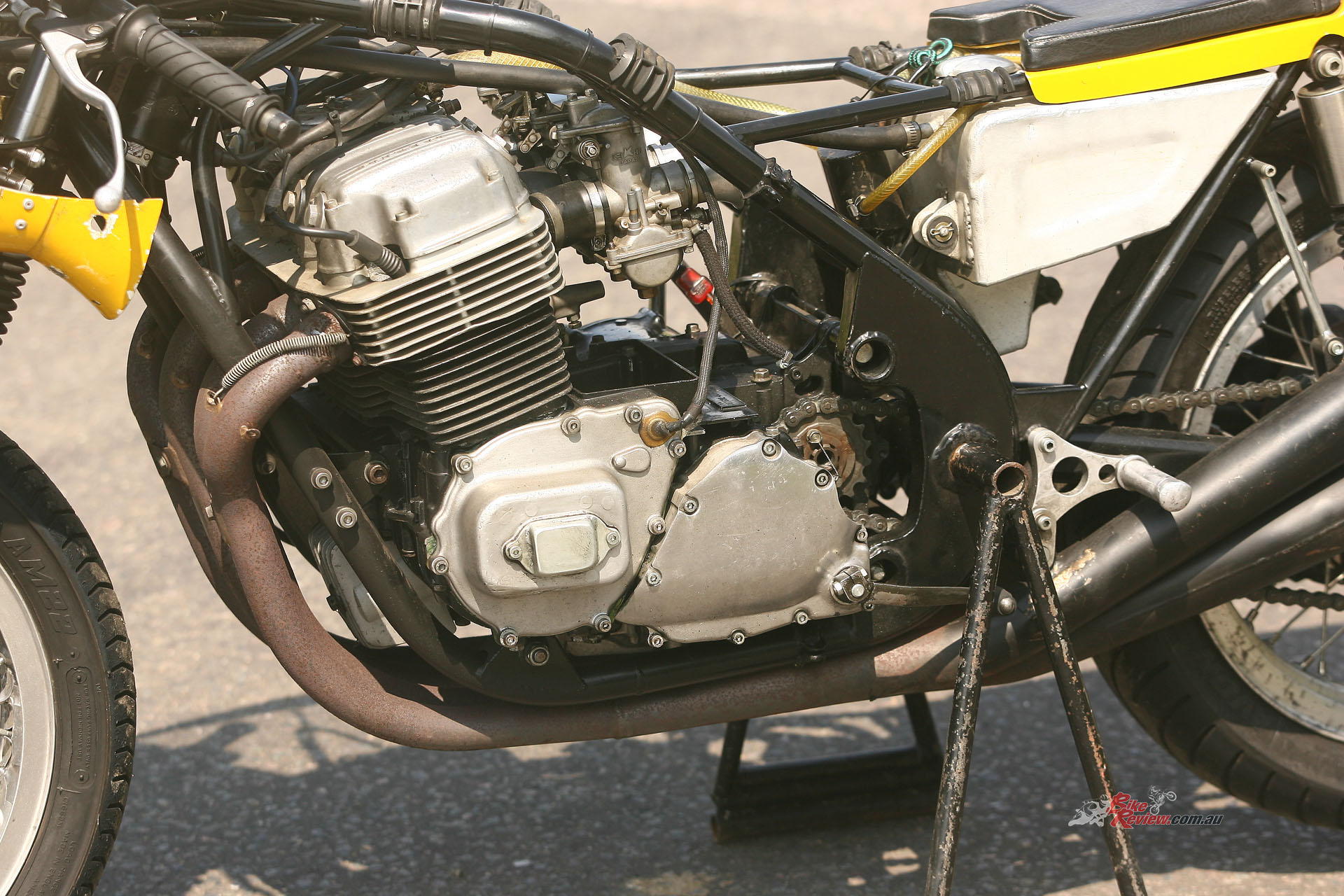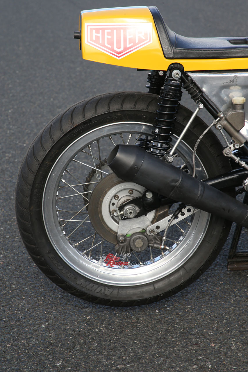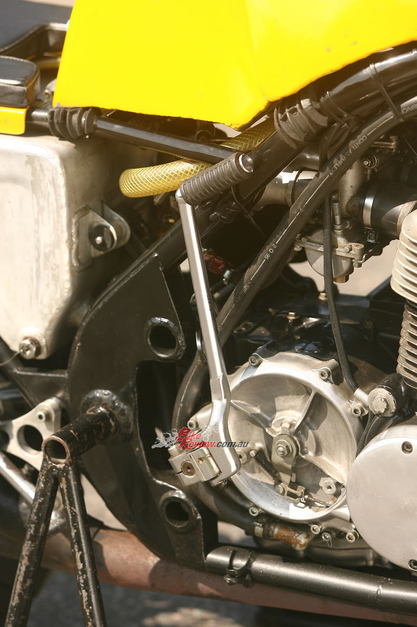 “We also had a factory crankshaft, which we used as a template to modify the road crank to factory spec,” said Julian. “We lost at least ten pounds from it, and that made it rev a lot easier, plus it was much crisper. We also had an RSC factory ignition, which still used points but with a slim generator on the opposite side.” The Hadleigh-tuned engine retained the stock conrods, but was fitted with several Yoshimura tuning parts including a camchain and tensioners, a high-lift Daytona camshaft and a close-ratio five-speed gearbox, plus heavy duty springs for the standard clutch, and dual S&W valve springs on the stock valves.