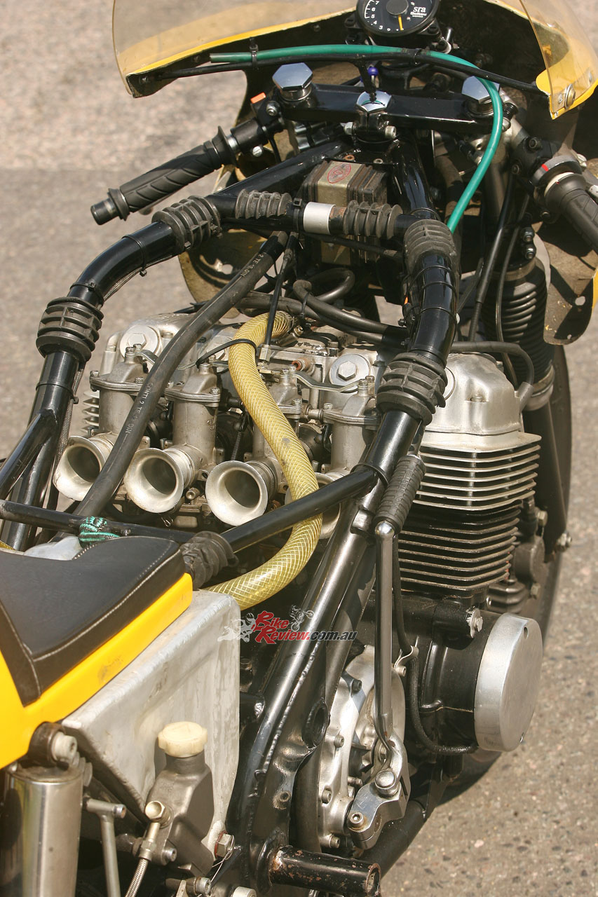 Soper sold the Hadleigh Honda with a 750cc motor replacing the 900 Honda engine which Dave Bexley kept for his sidecar to Cheshire dealer Bill Smith, who did a 98mph practice lap on it for the 1978 Isle of Man TT F1 race but non-started, though Derek Huxley raced it for him the following year, but DNF’d. The bike was then bought by RAF engineer Cliff Furnival, who fitted a Rob North letterbox fairing and raced it extensively, latterly in Classic events. He eventually sold it to bike dealer Paul Gaskin, who took it to Daytona and was running second in the Classic F750 race until the battery went flat, before parting with it to Guernsey-born Chris Wilson, a noted collector of factory 500GP two-strokes, who owns it today. How come, Chris?