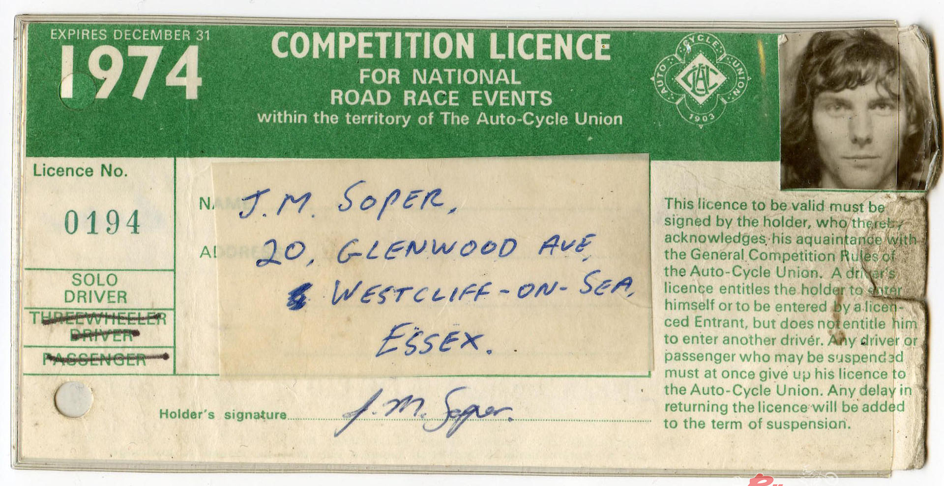 1976 saw Soper’s second season on the Hadleigh Honda riding exclusively at National and International level, with his highlight winning the Four-Stroke support race and setting a new Unlimited lap record for the Brands Hatch short circuit at the Good Friday Transatlantic Match Race meeting. Soon after Julian was offered a test ride on the Norton Challenge with a view to replacing the new retired Dave Croxford on the bike, but as his season’s race notes describe, this was the ‘Let Down of the Year – trying out the works Norton Challenge at Brands and finding out it didn’t go or handle very well’!