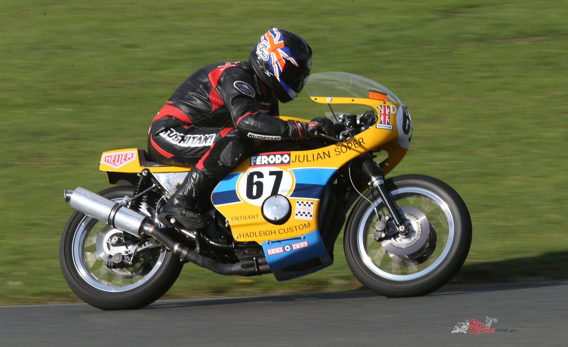 The Unlimited class pitted riders against four-time Bemsee Club champion Lance Capon – the last such title, in 1975, tragically awarded to him posthumously – on his brutally effective one-litre Vincent Special. Other incredible bikes included P&M founder Richard Peckett’s melodic Dresda-framed RPS Triumph triple, Chris Emmins’ fearsome 850cc Weslake, Dave Camier’s and Mike Shoesmith’s thunderous Norton twins – and as ultra-distinctive as ever thanks to its rider’s trademark striped helmet, the howling Hadleigh Honda four of Julian Soper.