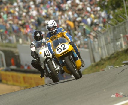 “But in the end I sussed how to beat the lot of them. I had to be close enough to Trimby going on to the back straight to be able to outbrake him going into the Esses, then I could stay ahead of him through the Bomb Hole and Corams – as long as he didn’t come past me again on the Start/Finish Straight before the flag, I had him. He might pull alongside halfway down the back straight, but I’d broken him and in doing that I had also broken the TZ350s, because then he was in their way, and it was inside, outside, sometimes in the grass going through Russell’s! But it was great racing, and it brought in the crowds, as well as the prize money!”
