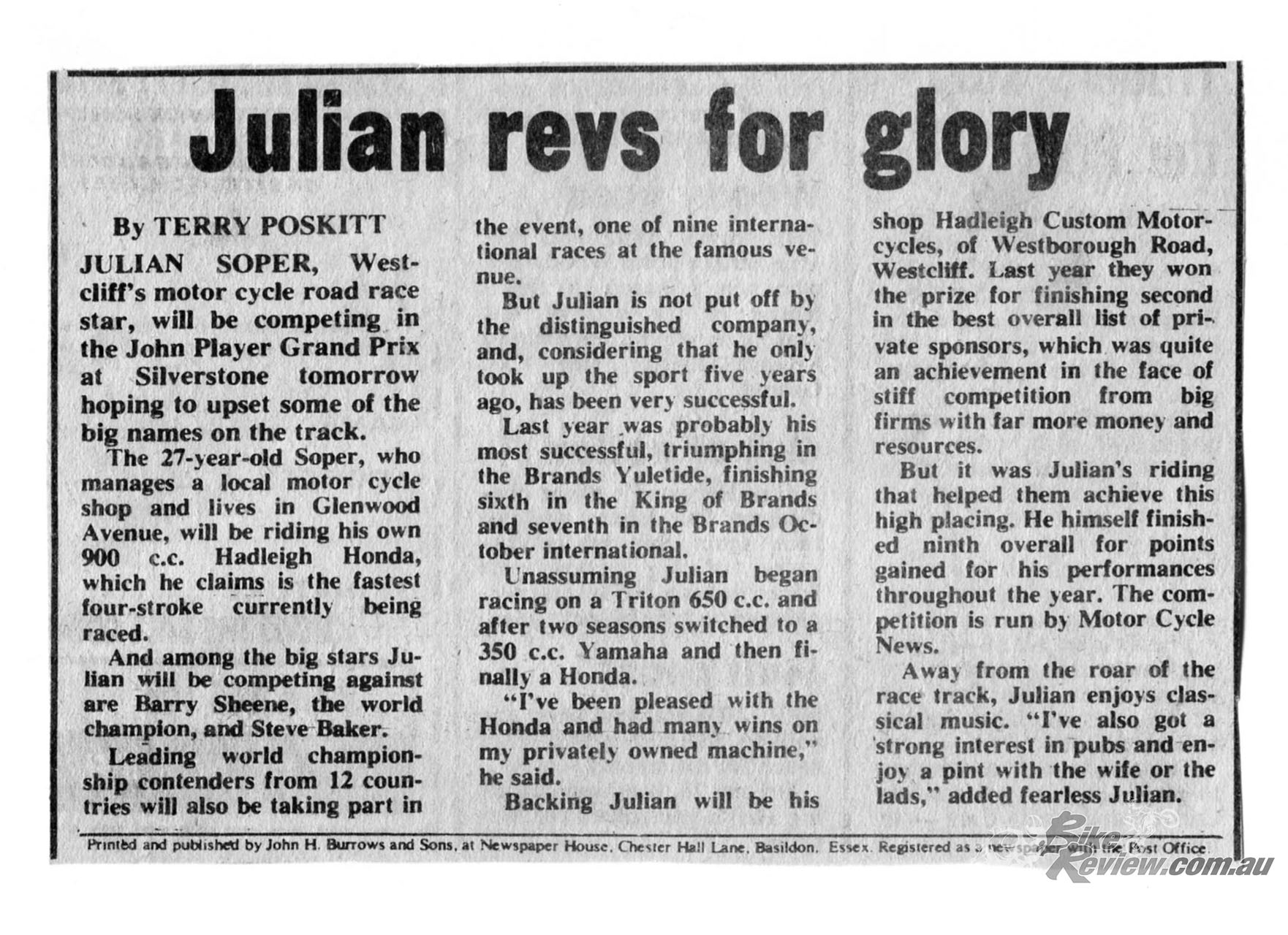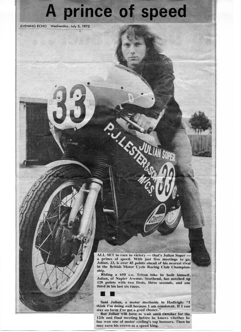 Enter Julian, a Welsh-born motorcycle mechanic living in Southend who’d started racing in 1970 aged 22 aboard a 650 Triton he’d acquired from Geoff Monty. Julian passed away in December 2021, but fortunately not before I’d had the chance to talk with him about the Hadleigh Honda.