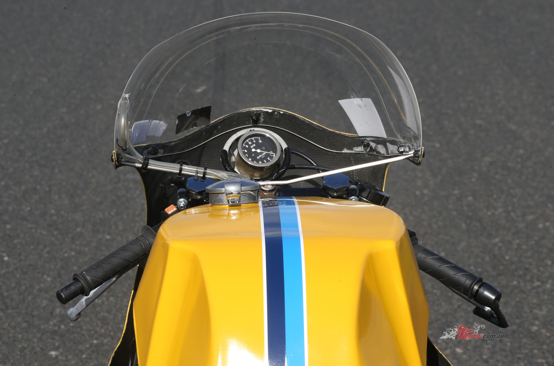 Soper was a tall bloke. The team opted for TZ750 aftermarket bodywork, which gave him more space to tuck his lanky build behind the screen.