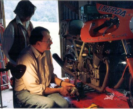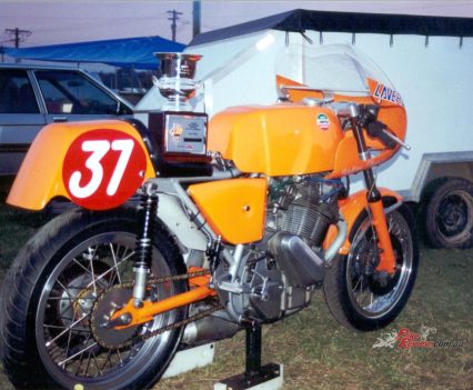 He campaigned the Laverda for the next three season in Production, F750 and Unlimited class racing, with consistent top three finishes and the occasional win. But getting disqualified from a second place finish in a push-start Unlimited Open-class race at Amaroo Park, after using the starter button to fire up the engine while still pushing, had him lamenting he was being penalised for riding a technically advanced motorcycle – because few other bikes had electric start back then, the rules didn’t specifically forbid you doing that!
