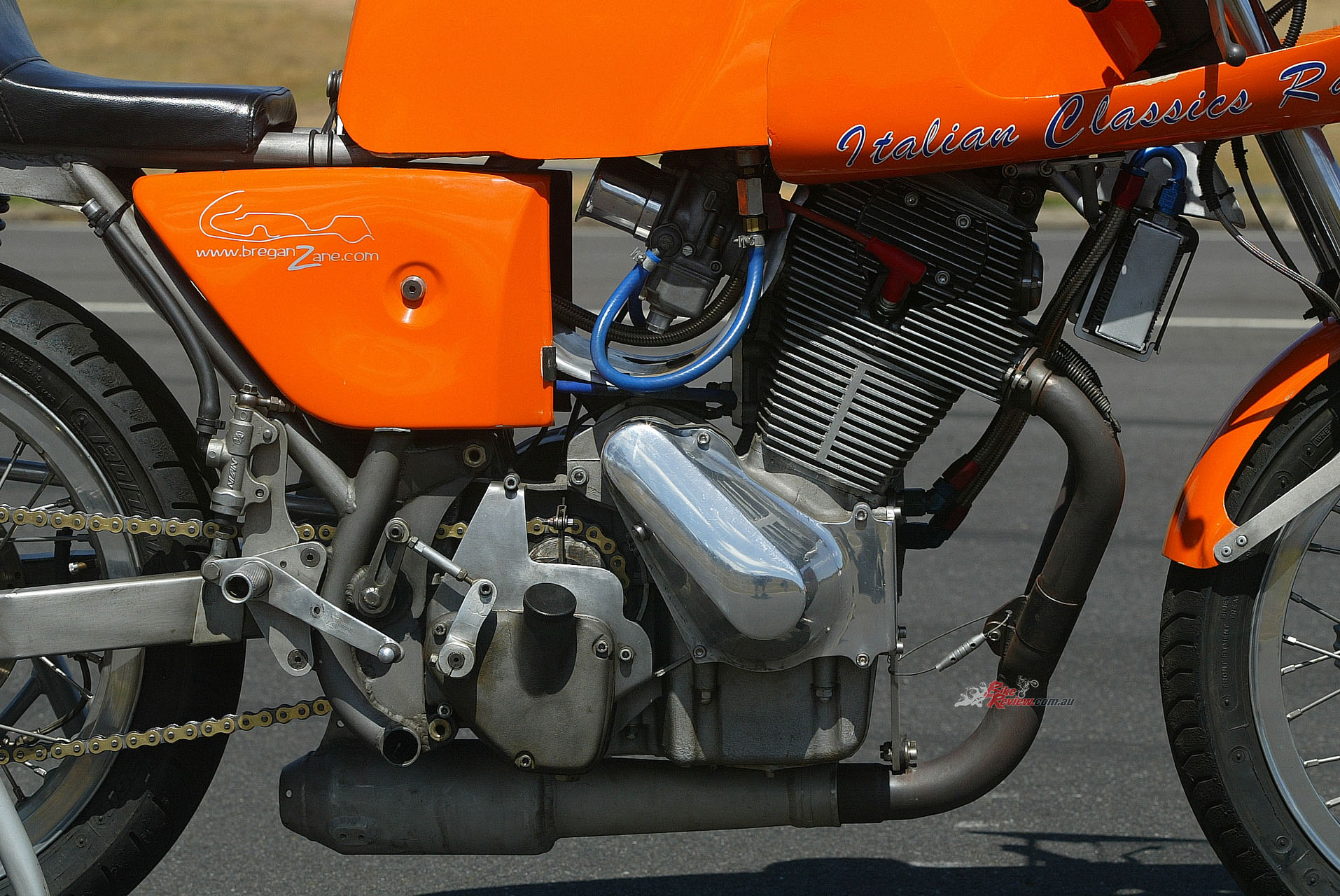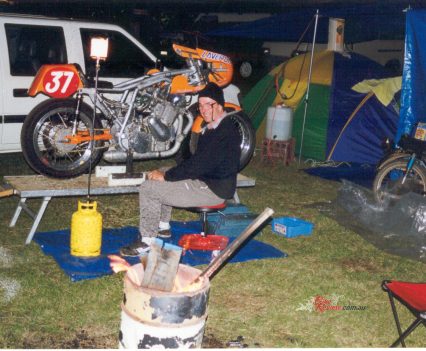 In Watson’s hands the Laverda became an established front runner in Aussie Post-Classic racing, winning many races over the next two years, before dropping a valve at the Island Classic in January 2001. That’s when the decision was made to take it out to 915cc via 87mm-bore Wiseco pistons, with the consequent 90bhp power output and extra torque – now running on methanol, with 380 main jets resulting in phenomenal fuel consumption! – resulting in the Laverda now becoming the class of the field. This came thanks to Campbell and Cutler’s dedicated development, and tigerish riding by Watson, who won the Australian Post Classic title at Winton that year, roundly defeating the bigger engined four-cylinder Hondas, Triumph triples and Ducati twins to do so. But the fruits of victory also provided the seeds of defeat.