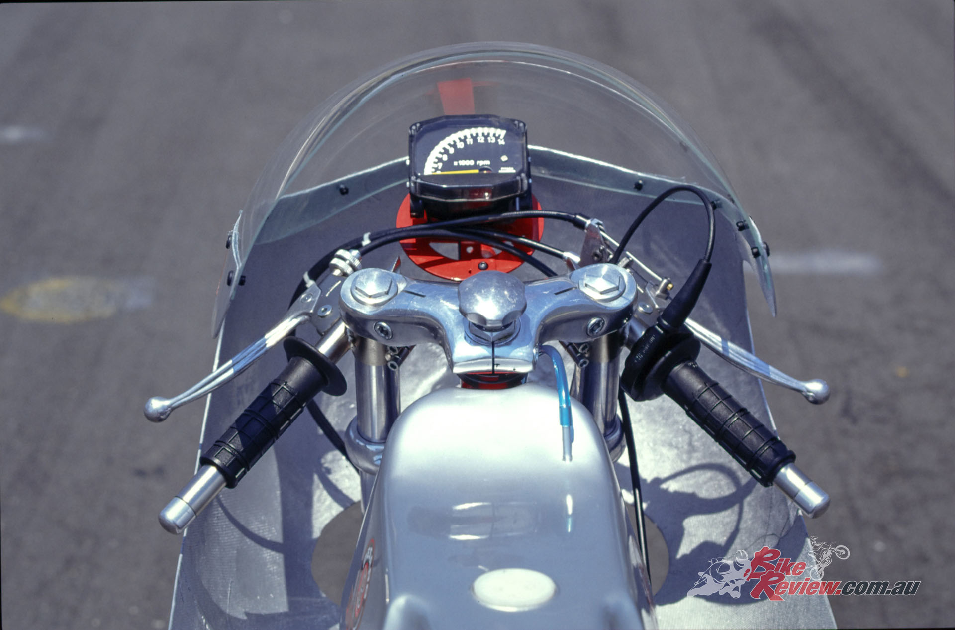 Well, only after finding a battery that worked properly and a hard enough plug to let the motor rev hard – but once that was sorted out, the MotoBi Sei Tiranti really delivered. It pulled pretty strongly from as low as 4,000rpm, which was a bit of a surprise, but then came a patch of megaphonitis which meant it was best to keep it turning above 7,000rpm even exiting tight turns, which could be achieved with a slight touch of the quite sensitive clutch lever to coax the revs out of it if you’d let it bog down. The carburettor slide and cable on this brand new bike were still rather sticky, meaning that in the absence of any graphite grease to free up the throttle, getting on the gas to drive hard out of a turn meant a rather jerky pickup via the Tomaselli quick turn GP throttle, as well as a stiff twistgrip action.