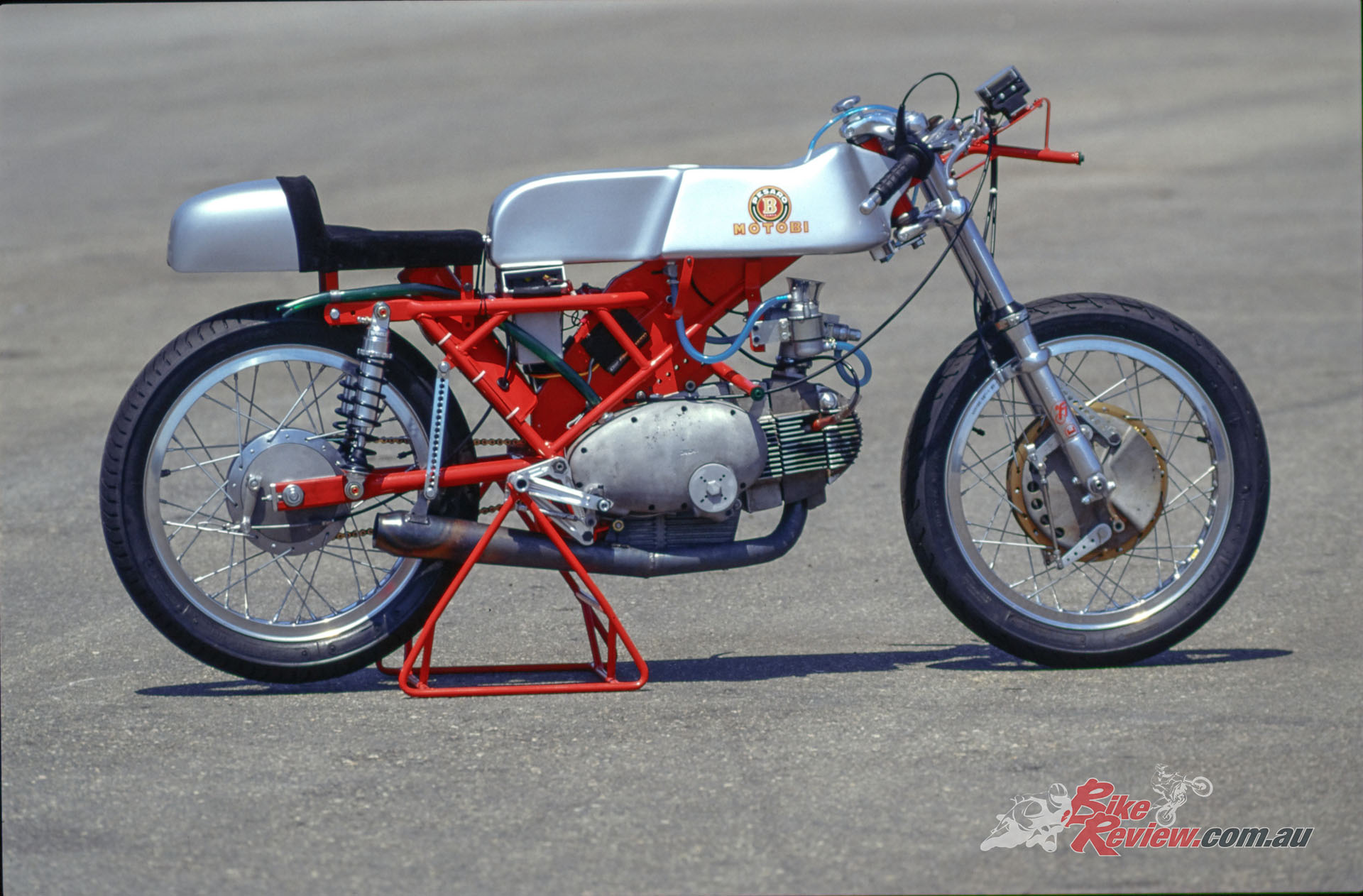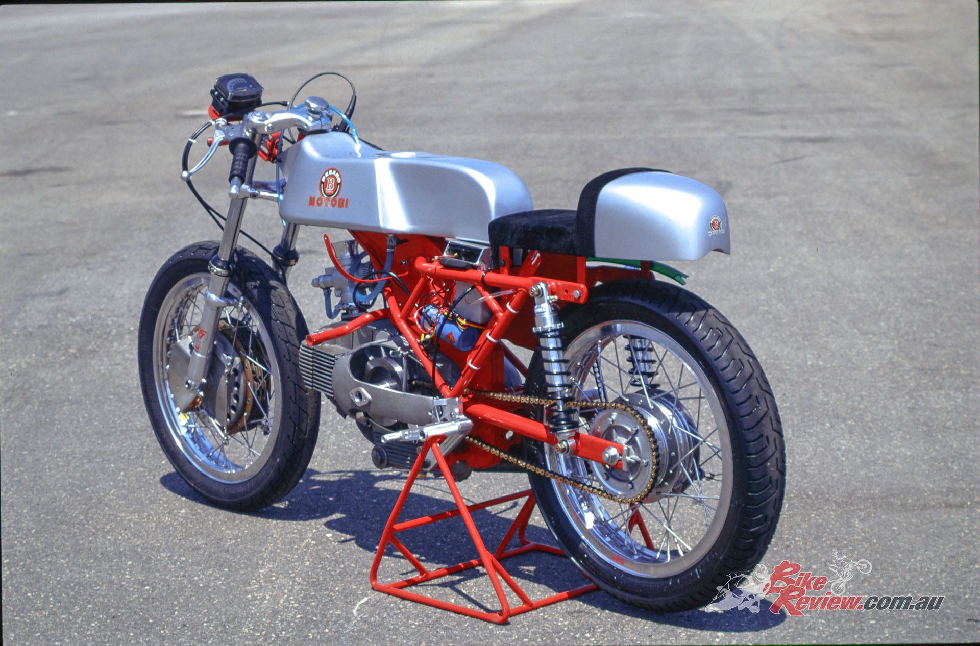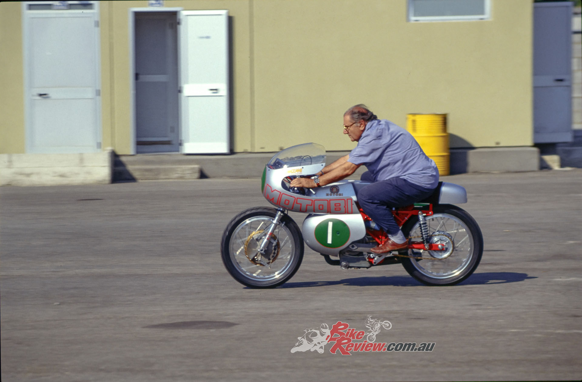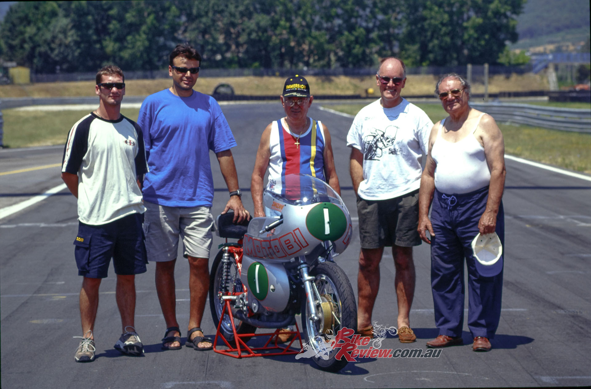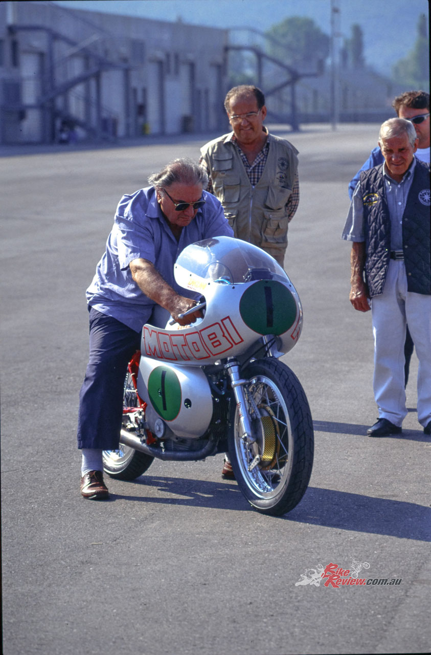 In the Italian summer of 1998, Cathcart took Primo up on his offer to ride the MotoBi at the tight 2.51km Magione circuit near Perugia – an ideal track to sample the merits of these light, nimble four-stroke singles.