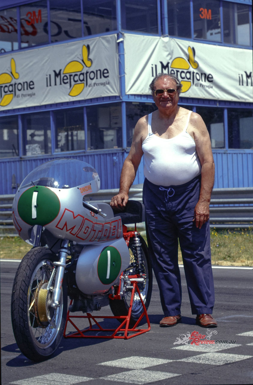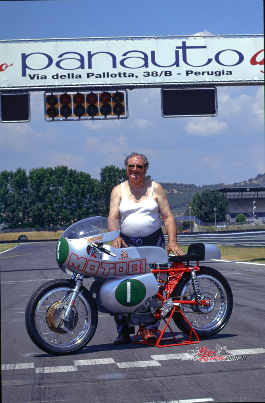 Thereafter, together with his two sons Athos and Mirko, Primo Zanzani continued to run the trio of high-tech machine shops he owned in Pesaro, producing intricate components for the local woodworking machinery industry – and complete MotoBi 250 Sei Tiranti replicas! He passed away in November 2017, aged 93, after a long and productive, but also highly passionate life on two wheels.