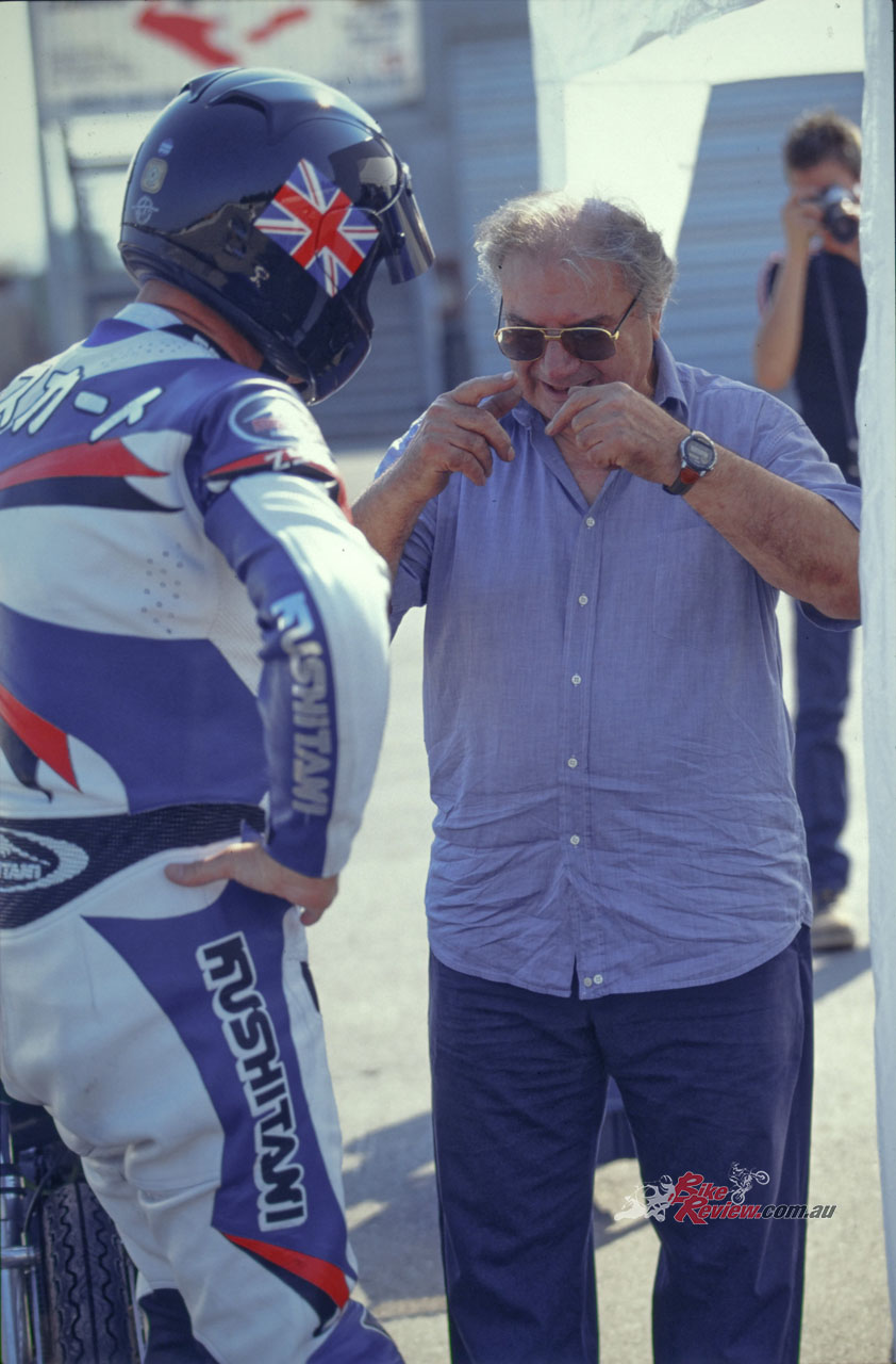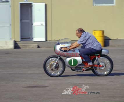 But before that, I’d come to know Primo during my regular visits to Italian race teams’ workshops, as well as track testing current GP racers fitted with his brakes. He was always eager to chastise me for having started my own racing career riding what he always termed the ‘anti-MotoBi’ Aermacchis which had copied the horizontal OHV cylinder format of the Pesaro brand’s singles, albeit without replicating the unique ‘eggcentric’ format of the Prampolini-designed MotoBi motor.